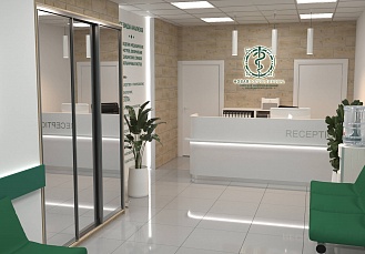 Зона ресепшн поликлиники "НОВАЯ ПОЛИКЛИНИКА "