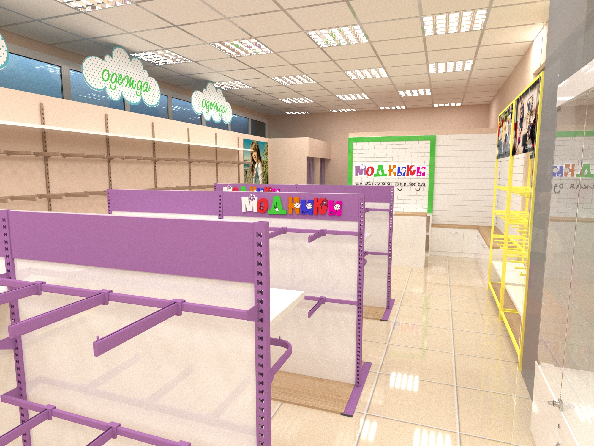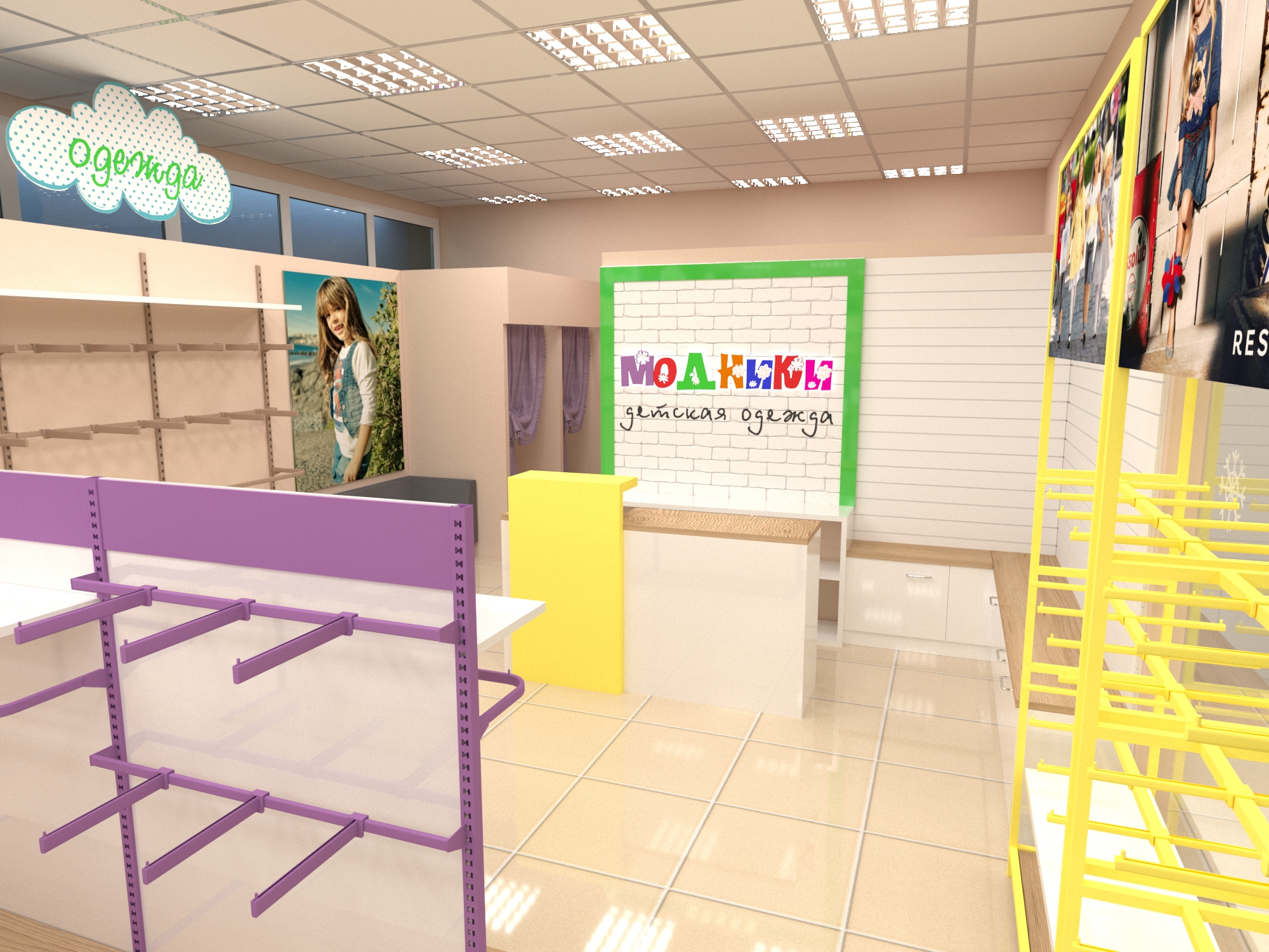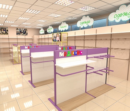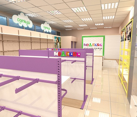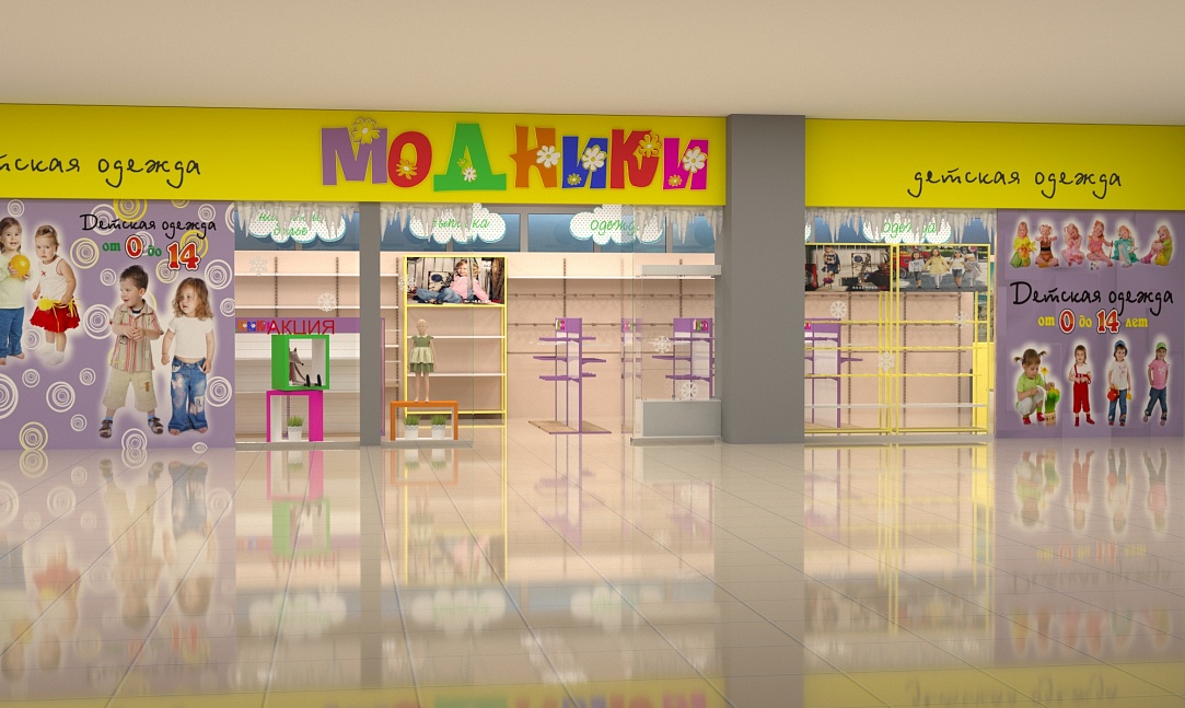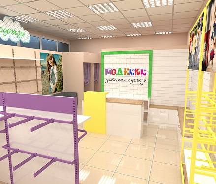 Задача - дизайн интерьера детской одежды, подготовка проекта для ТРК "Горки"