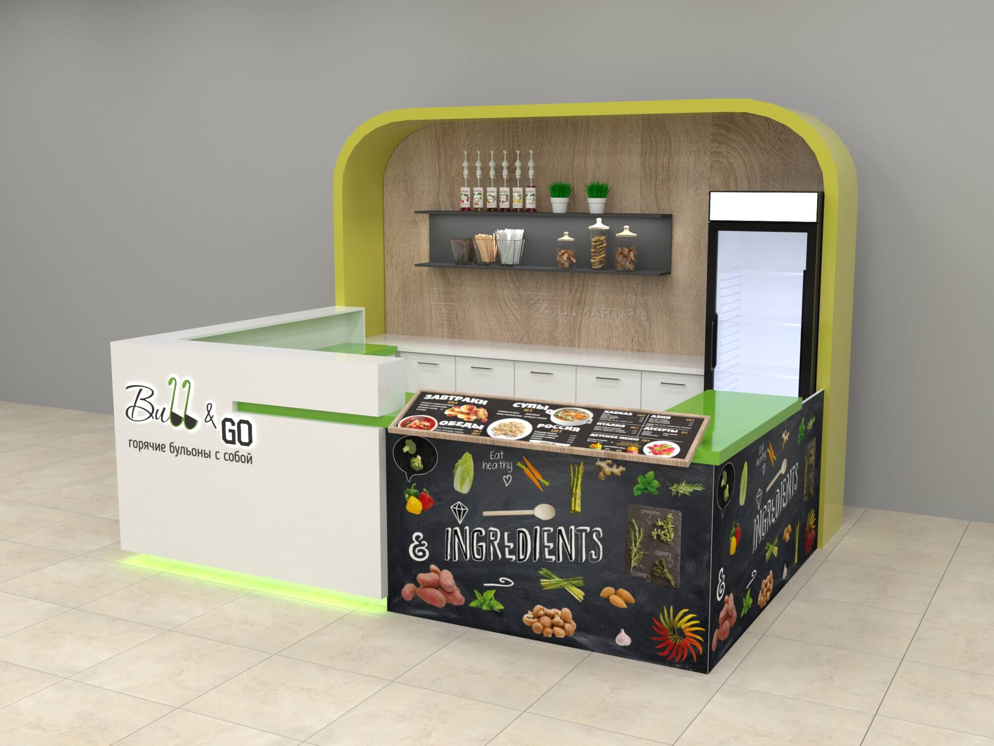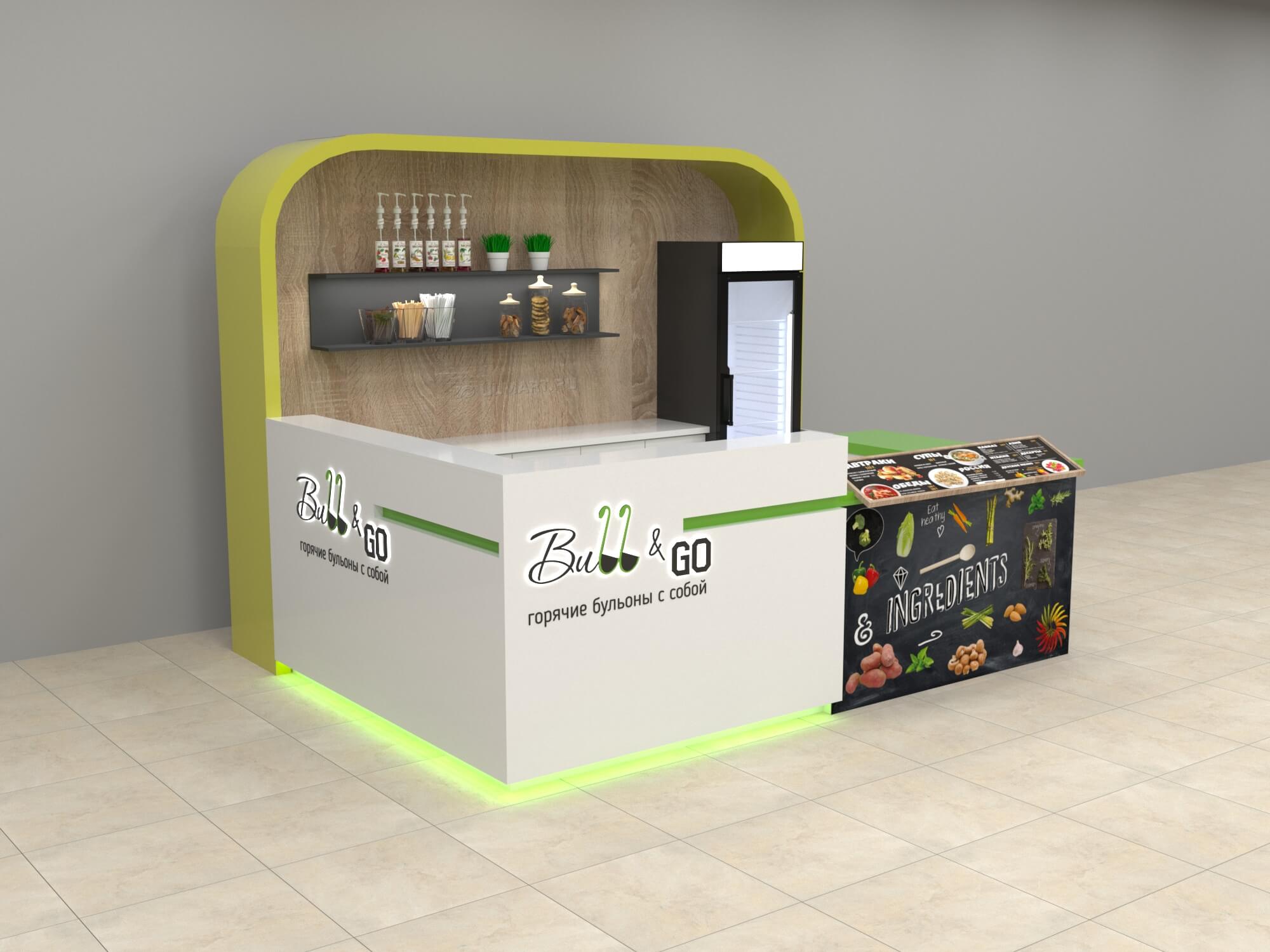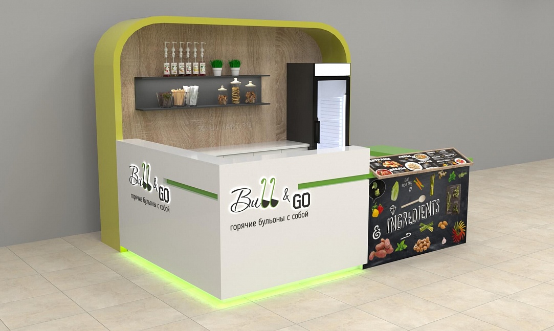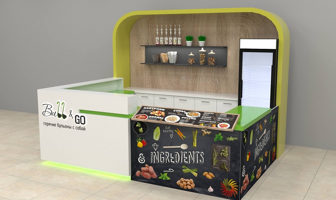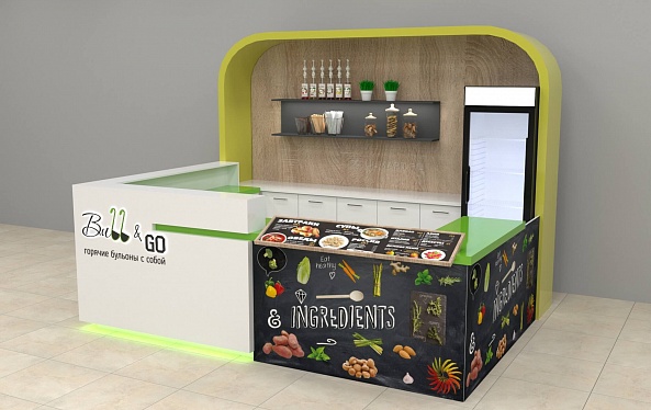 Задача - разработать яркий отдел по продаже бульонов с собой.