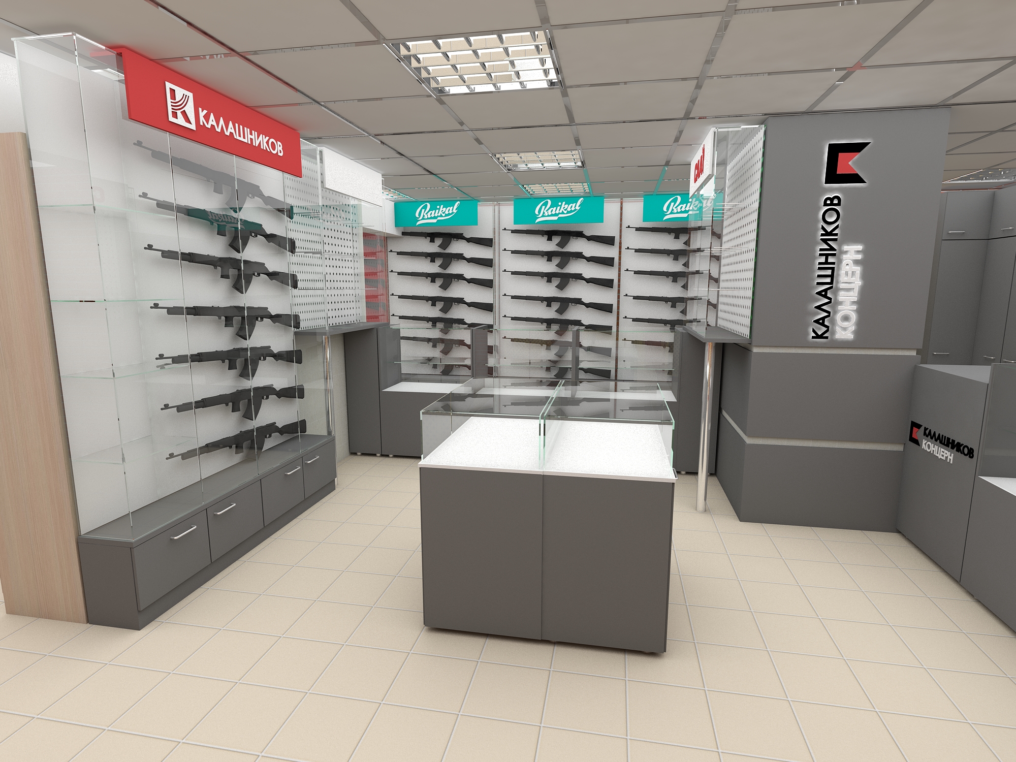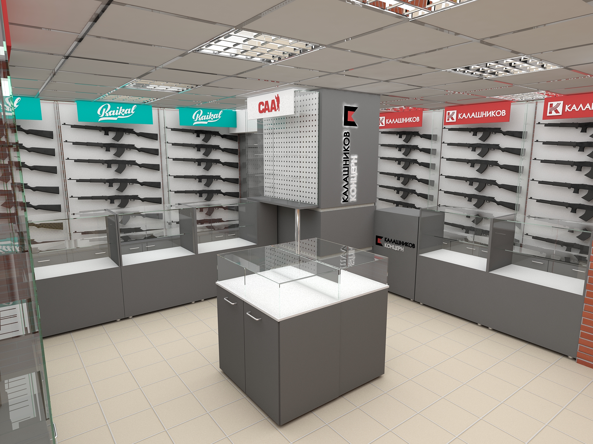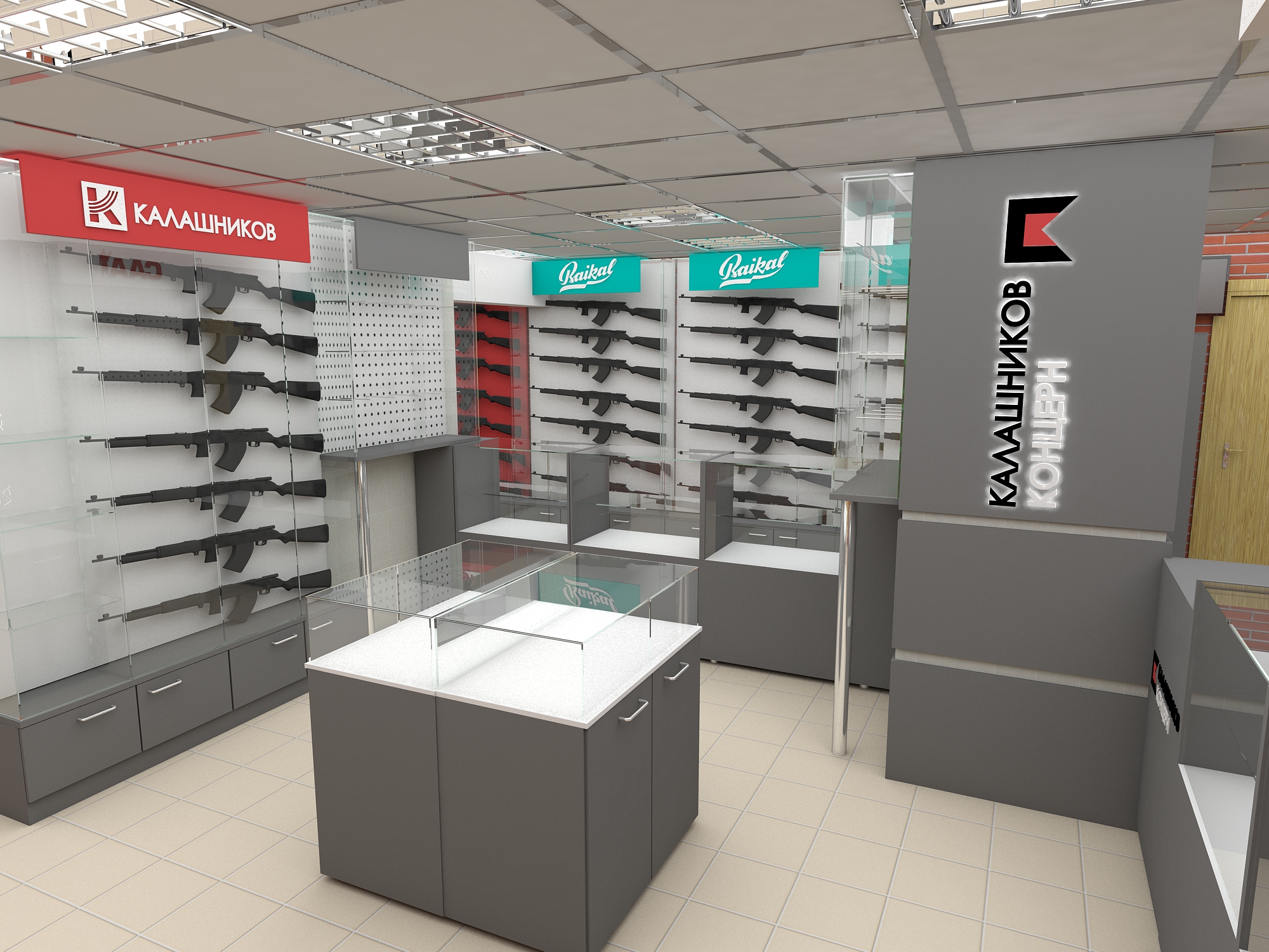 Задача - разработать дизайн интерьера фирменного магазина "Калашников"