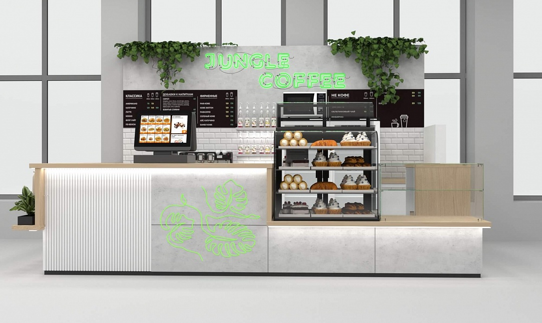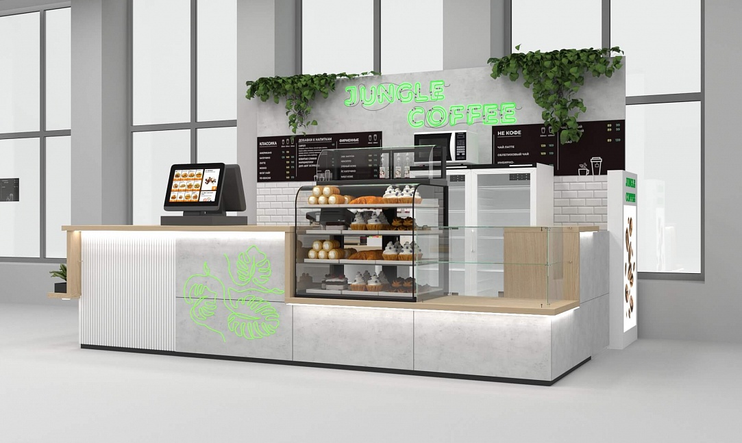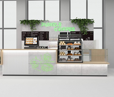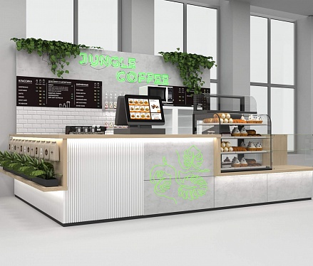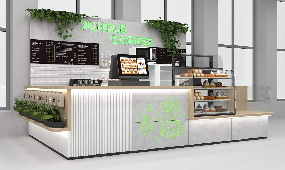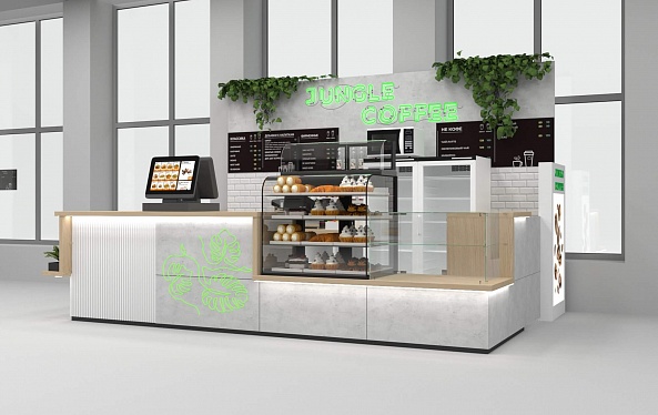 Задача - разработать функциональный островной отдел для кофе точки.