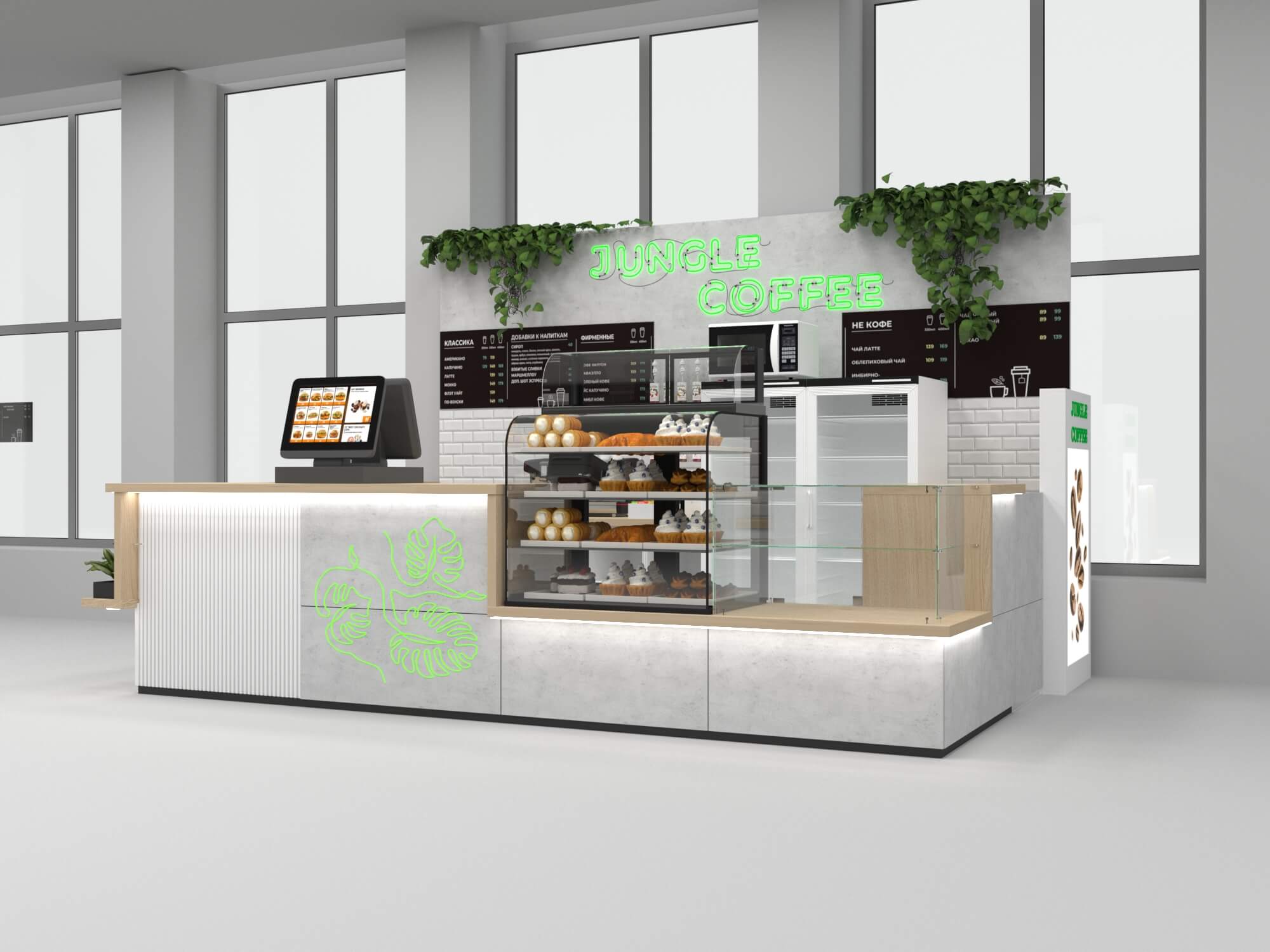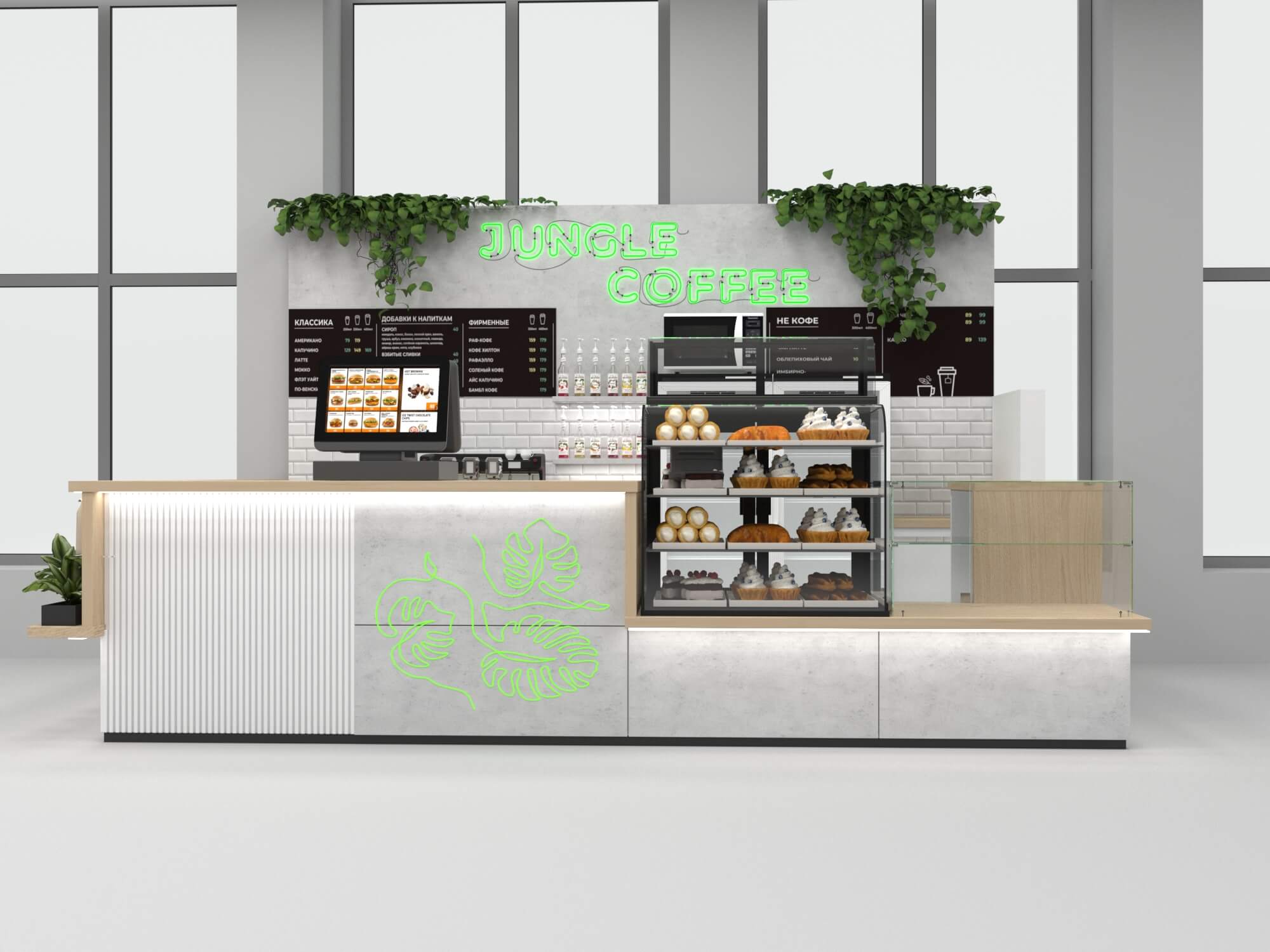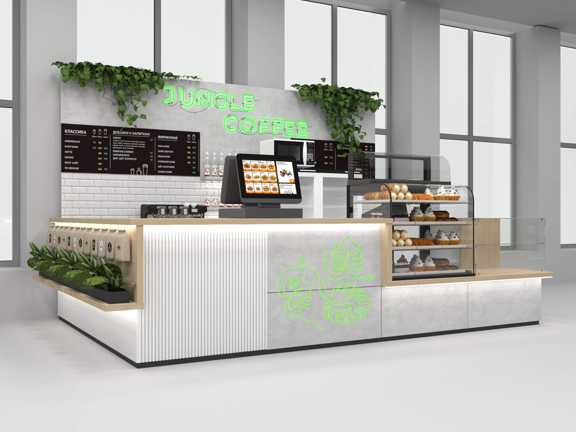 Задача - разработать функциональный островной отдел для кофе точки.