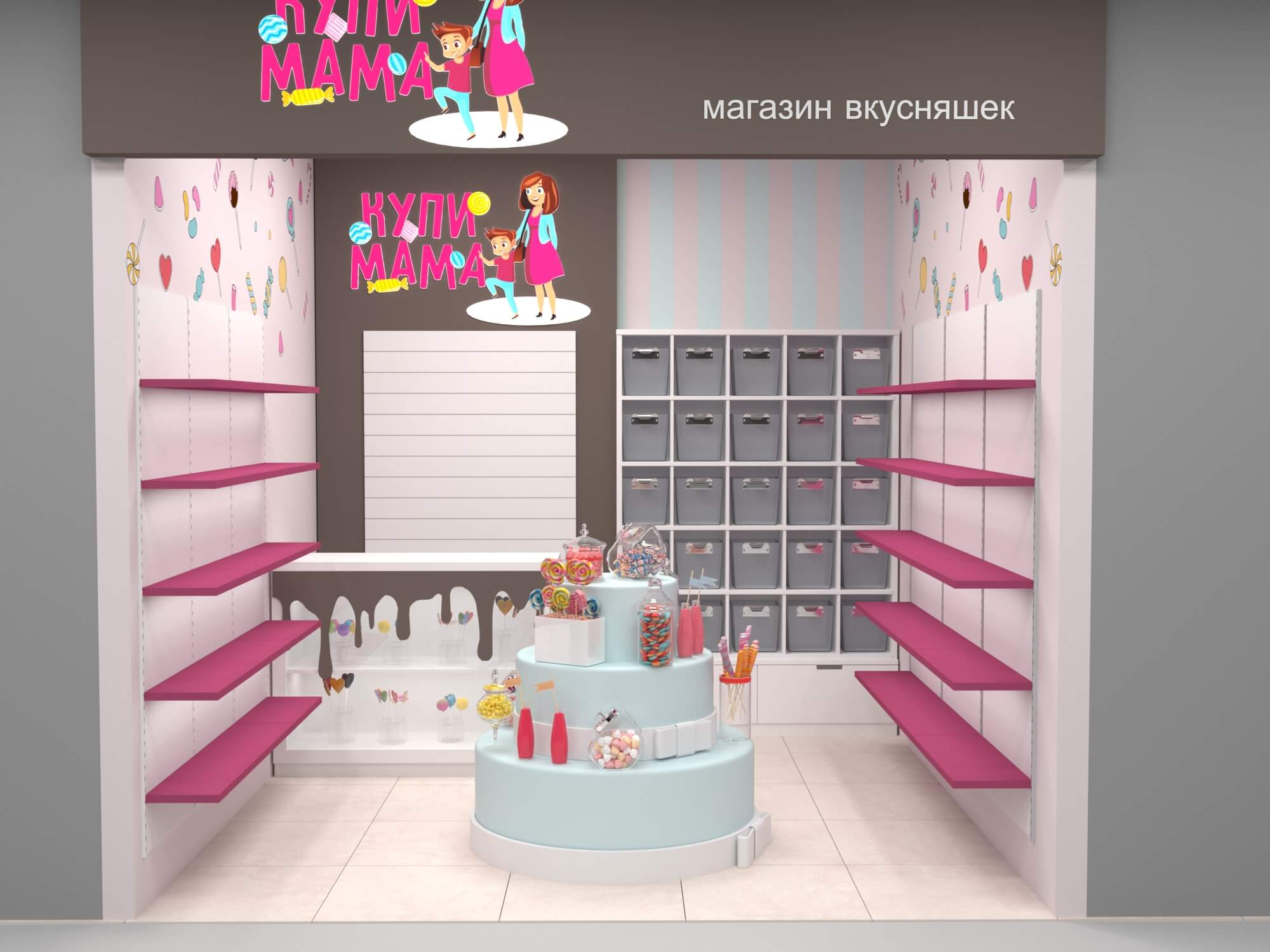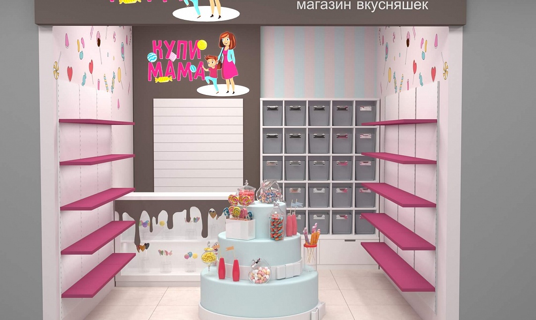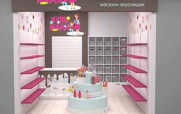 Все мы когда-то хотели попасть в необъятный мир сладостей, в котором горы были бы из конфет, а реки были наполнены молочным коктейлем? И зная об этой тайной мечте наши дизайнеры постарались привнести это в дизайн кондитерского магазина на такой малой площади. Яркая окраска фасадов в цвета леденцов, огромный по своим размерам торт-стеллаж и стекающий с кассовой стойки шоколад определённо придают этому месту ту сказочность, о которой мы когда-то мечтали.