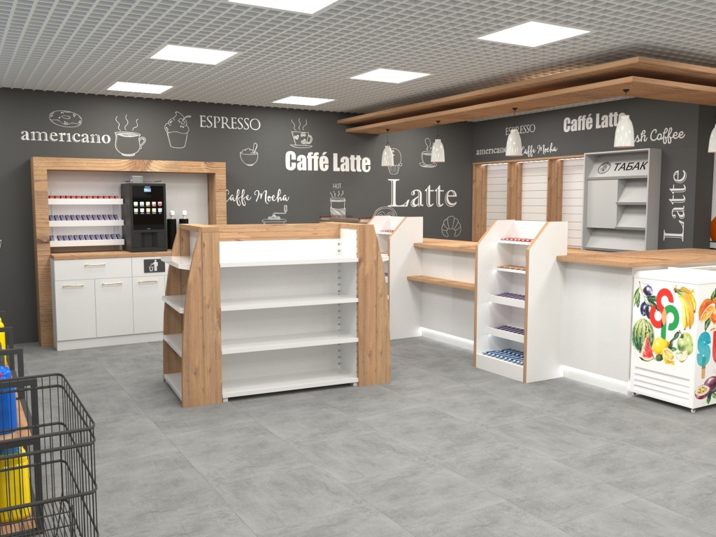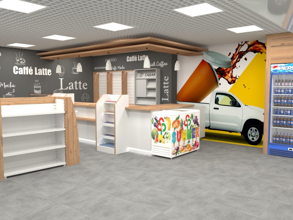 Задача - разработать дизайн интерьера на уже существующий магазин АЗС
