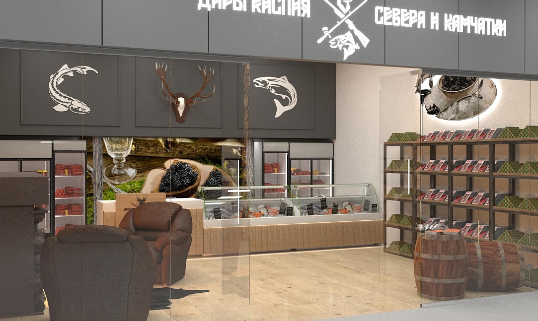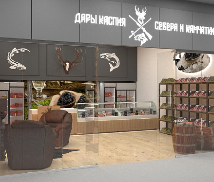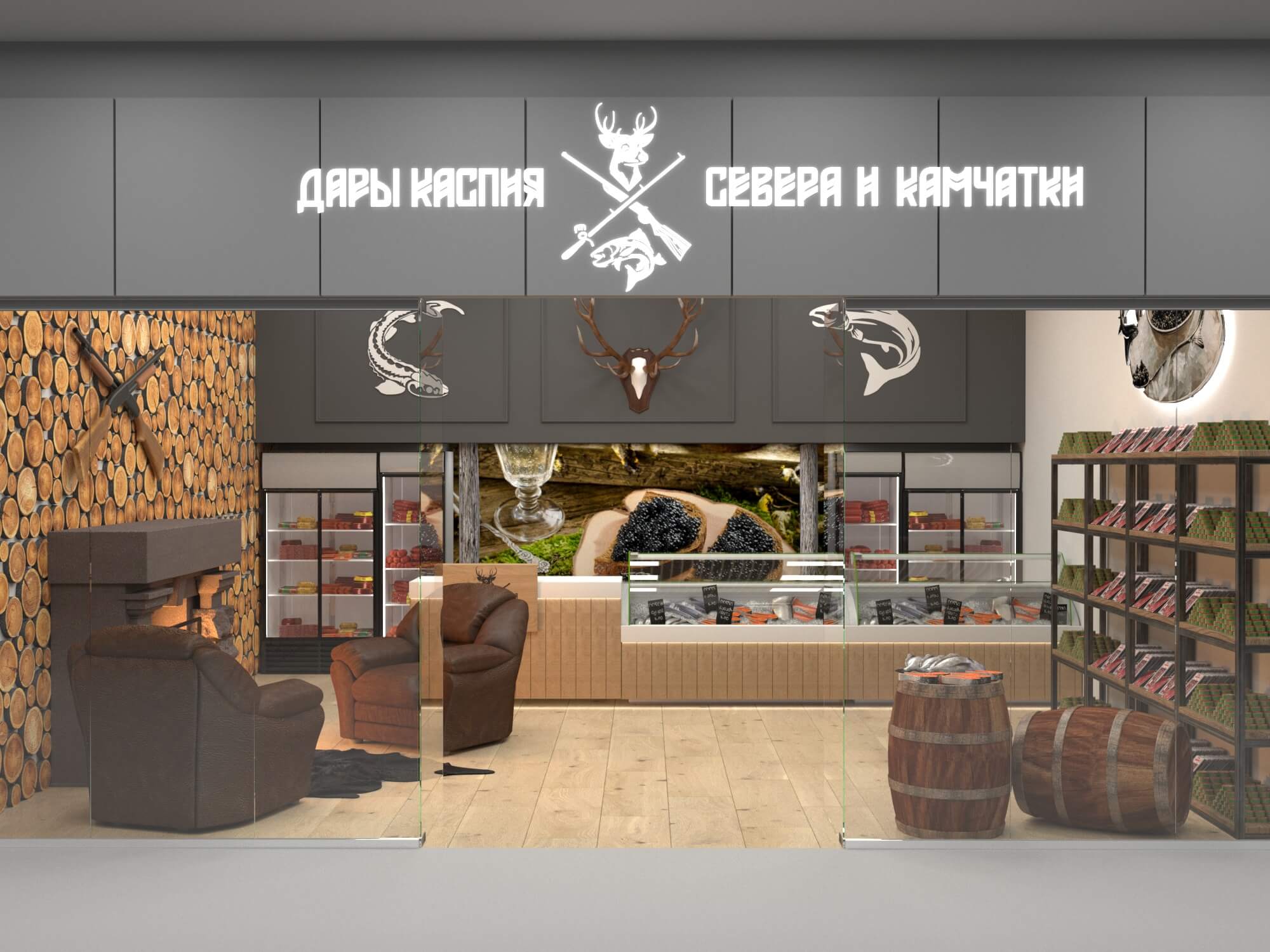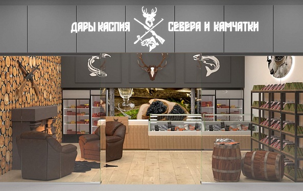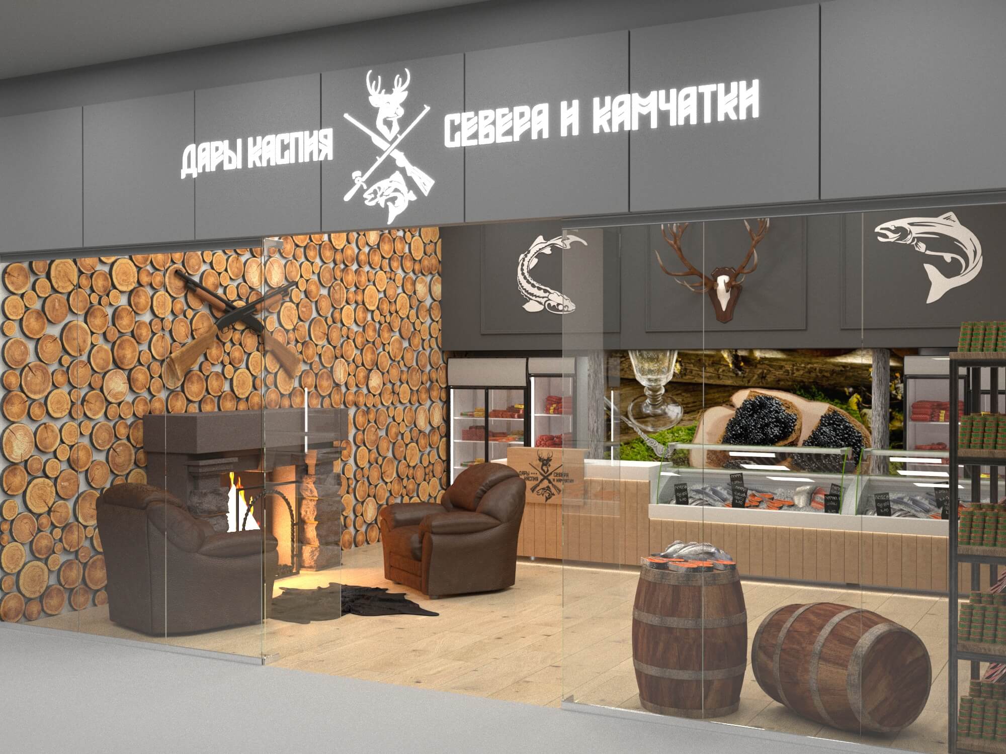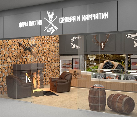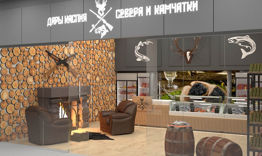 Задача - разработать дизайн магазина в стиле охотничьего домика.