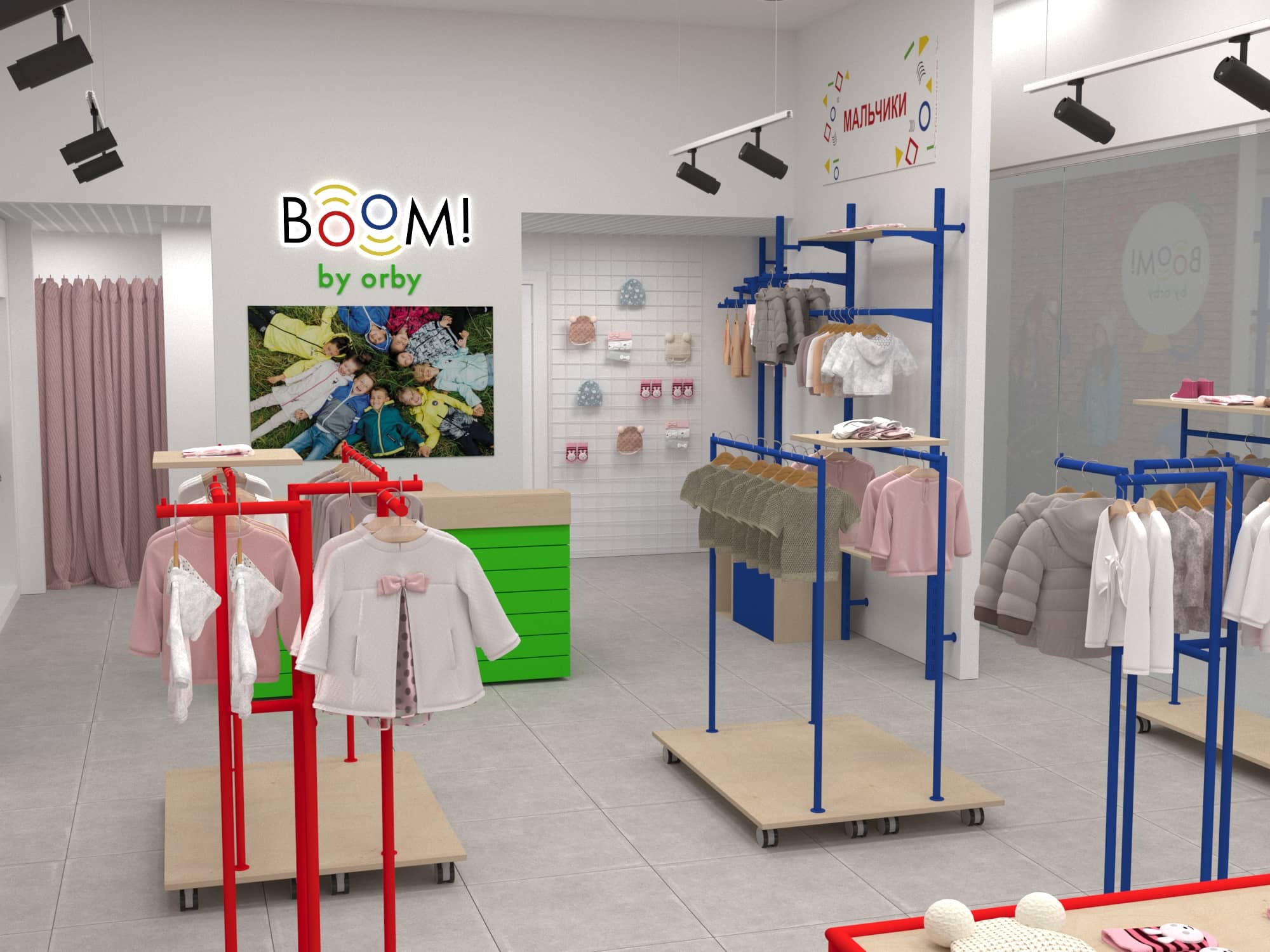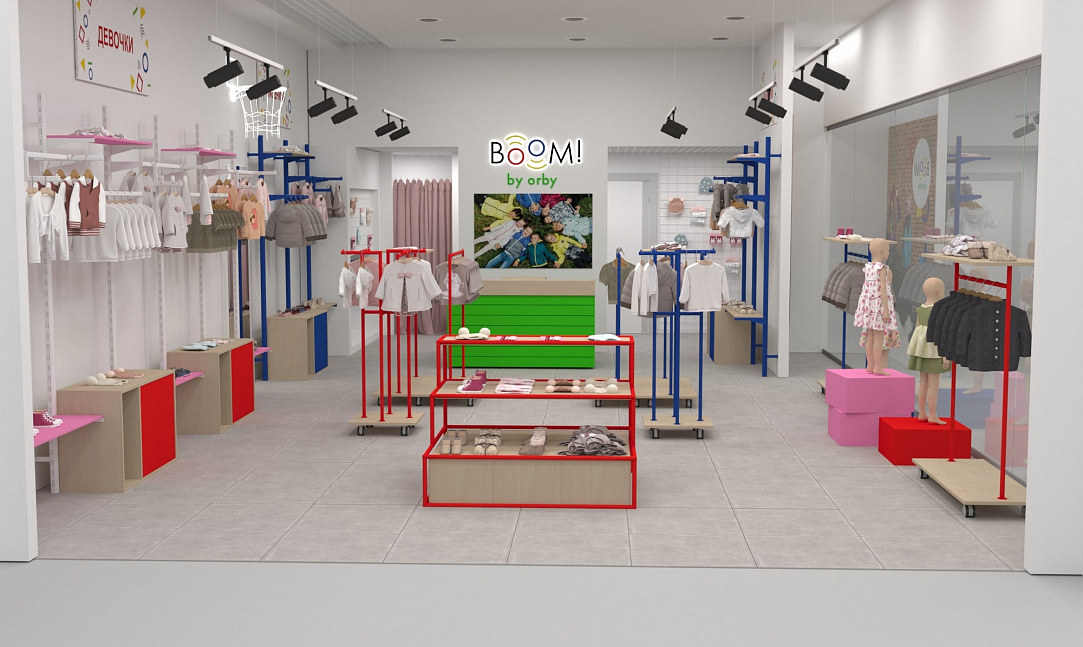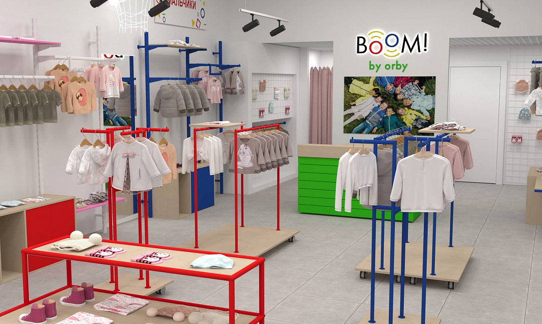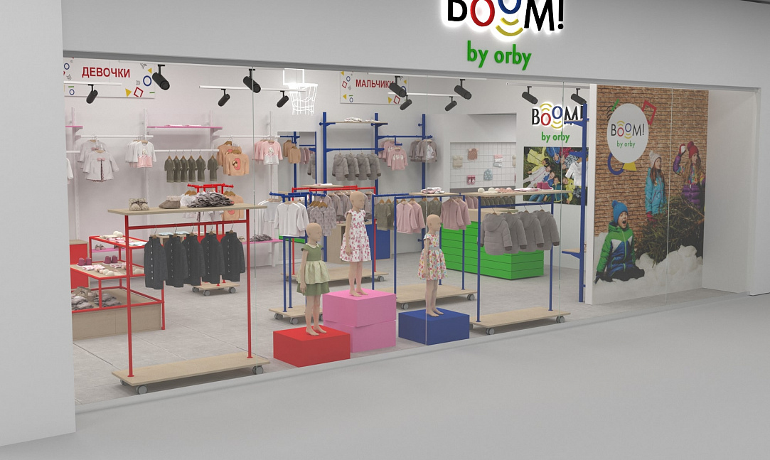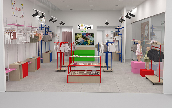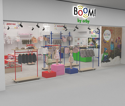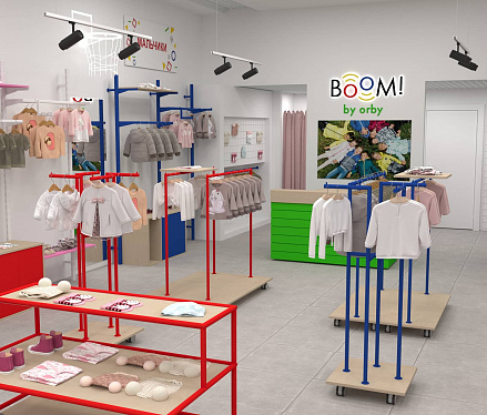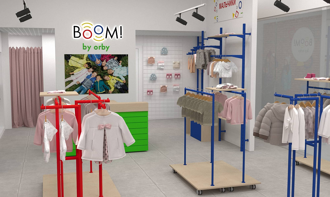 Для уже известного по всей стране магазина одежды для детей "BOOM by orby" был разработан особенный дизайн проект магазина.