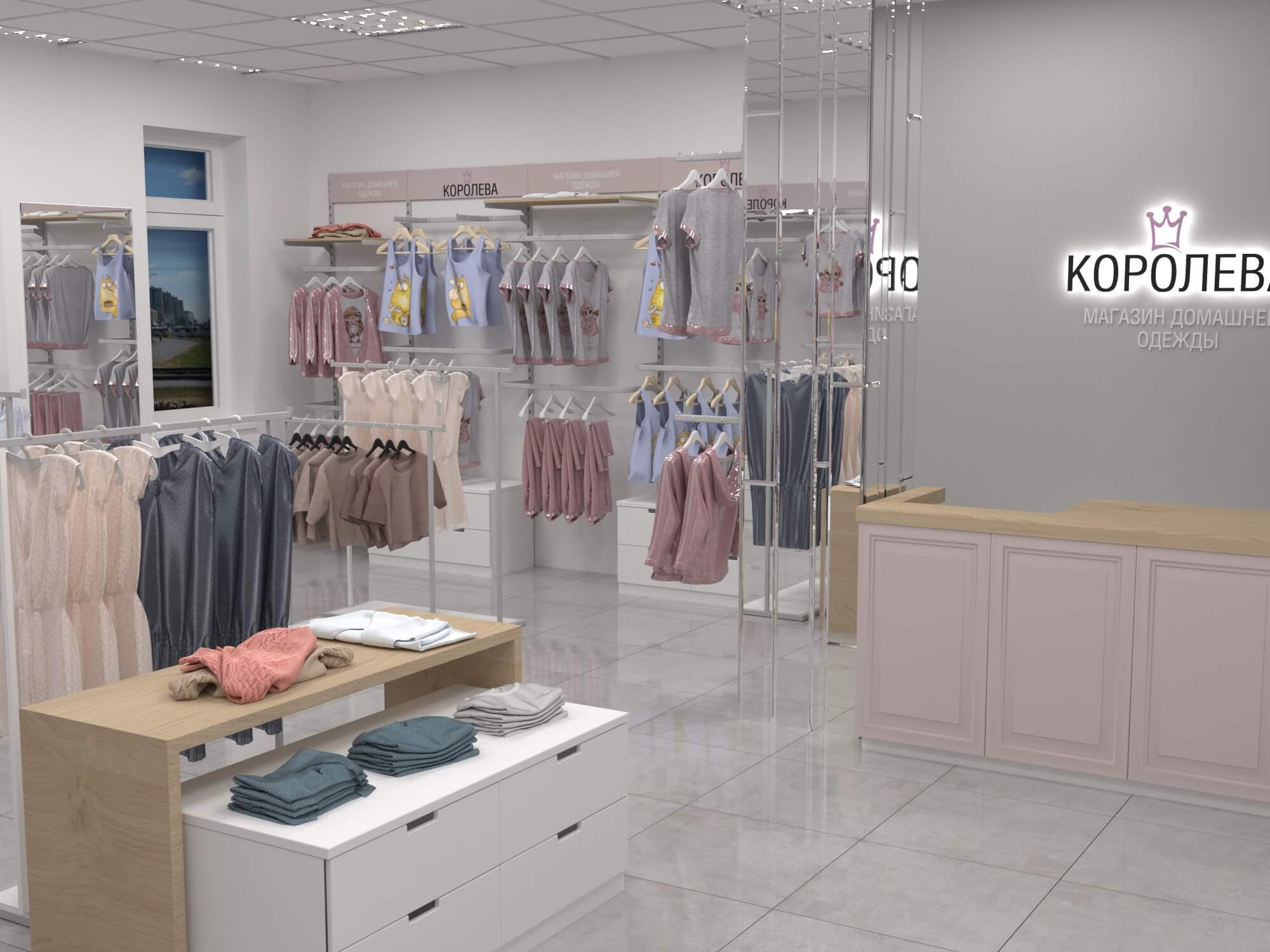Задача - разработать дизайн магазина женской домашней одежды в пастельных тонах