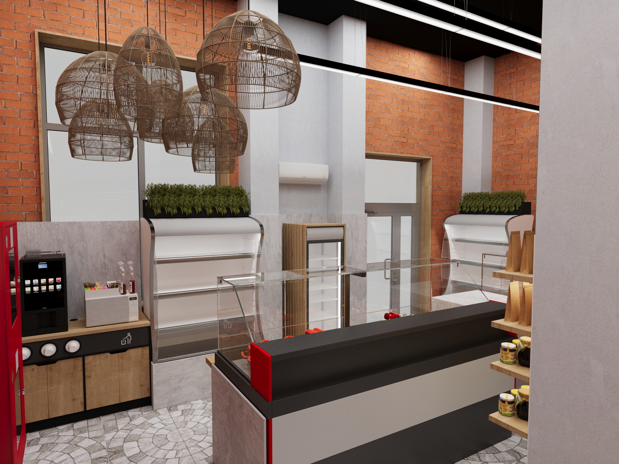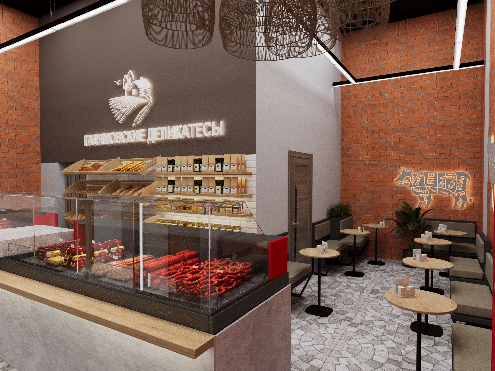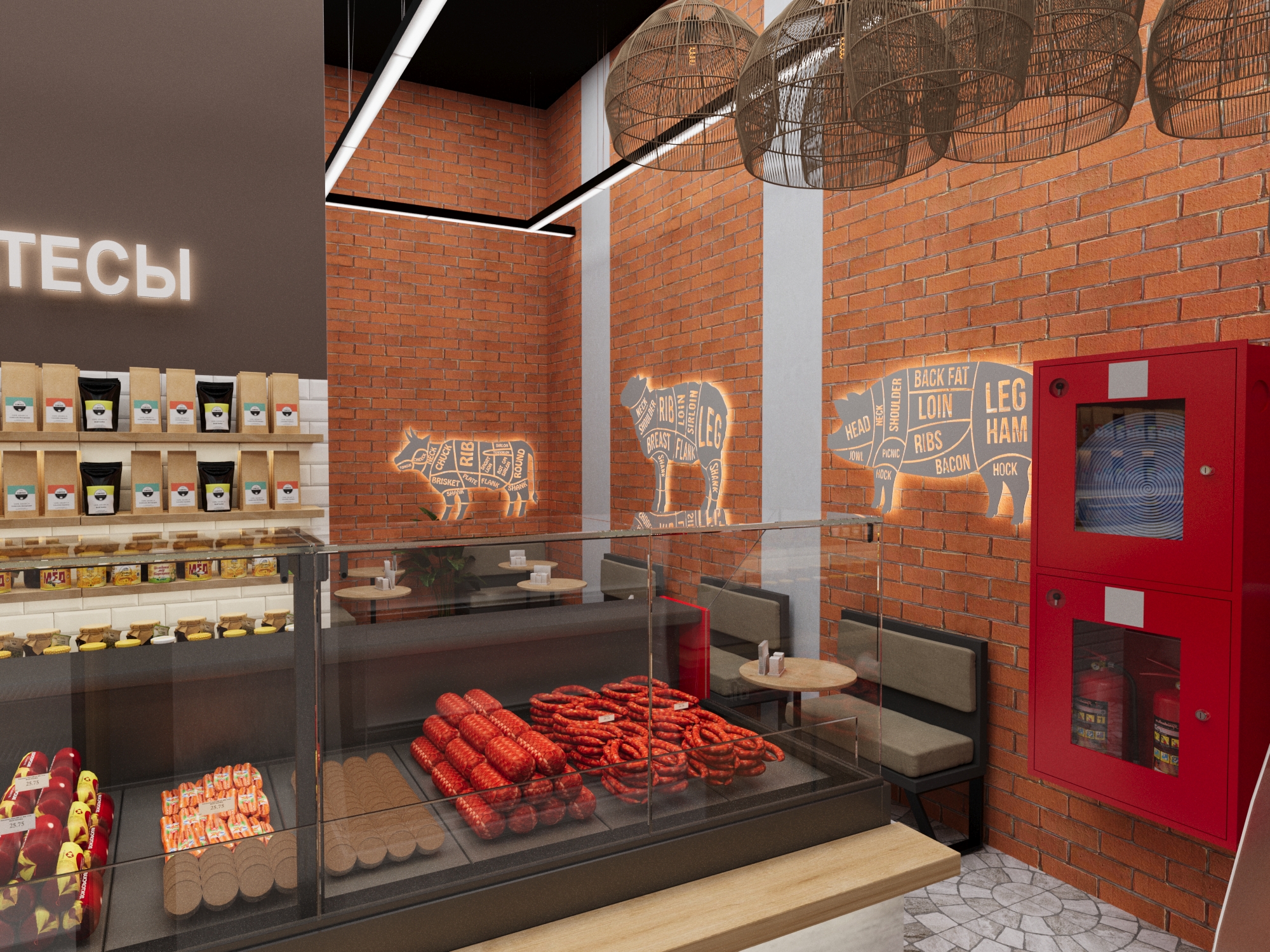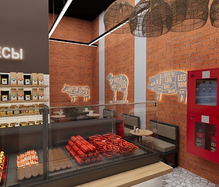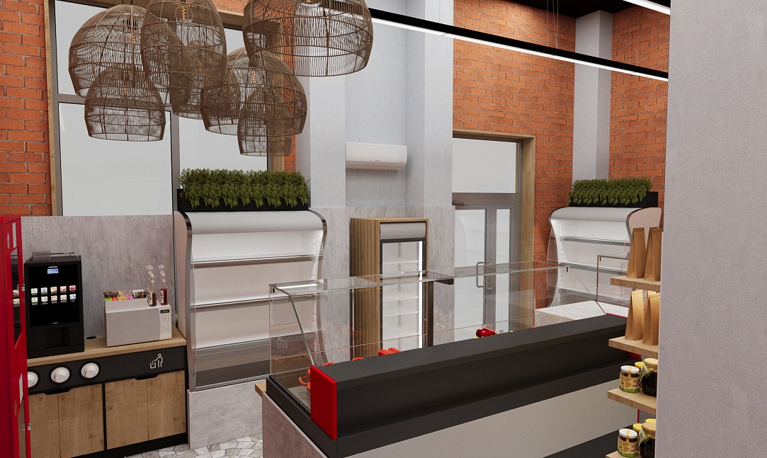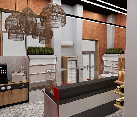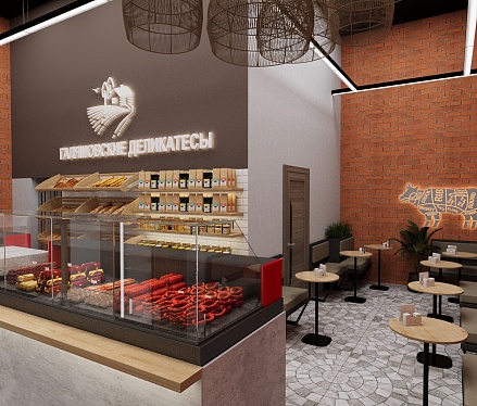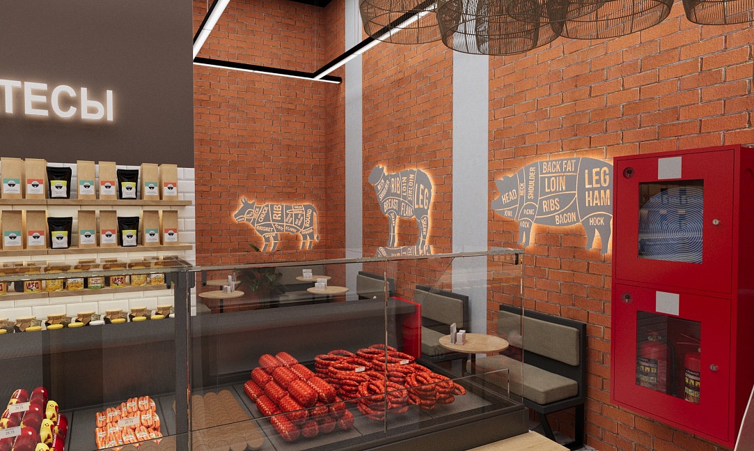 Задача - разработать дизайн магазина, отделить зону посадочных мест.