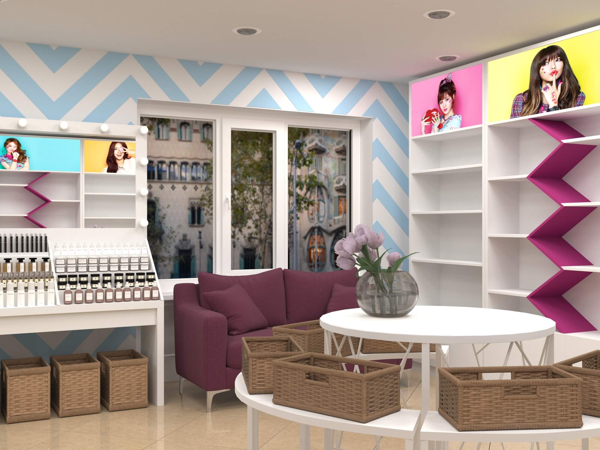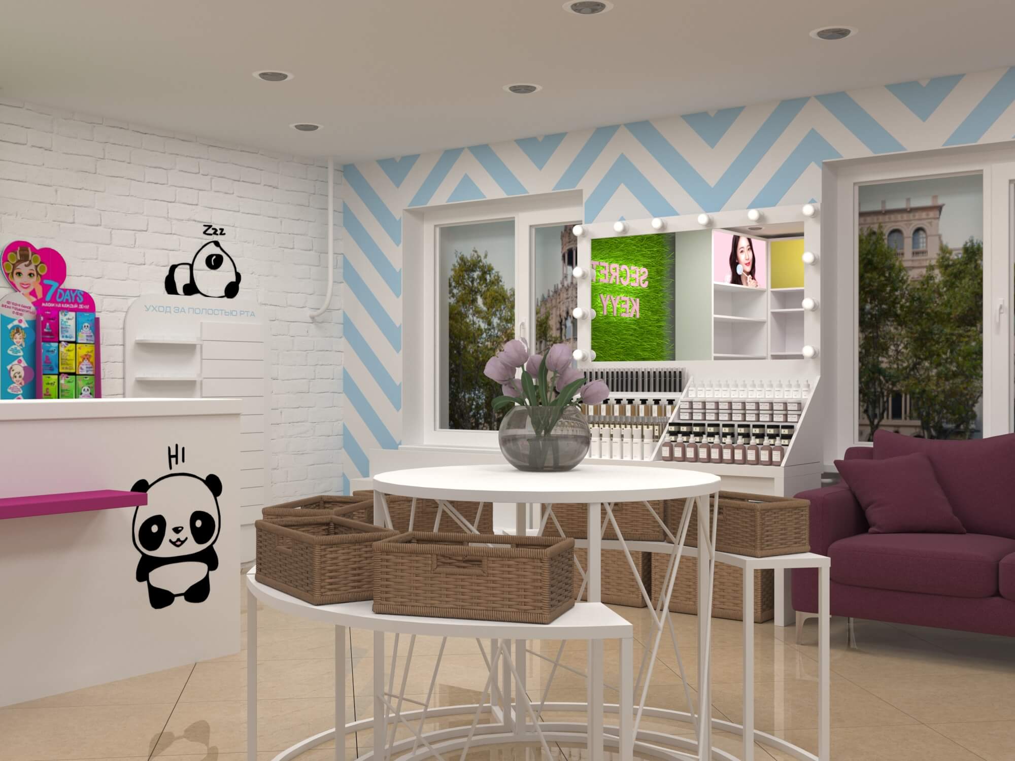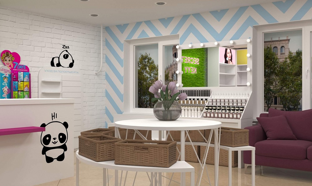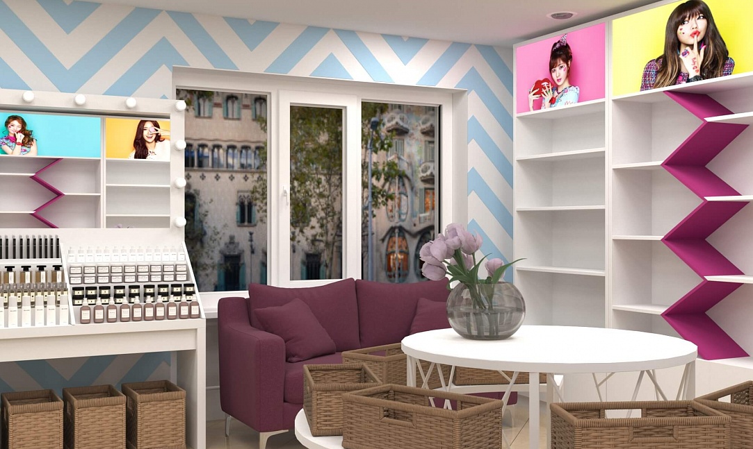 Задача - разработать яркий современный дизайн магазина молодежной корейской косметики