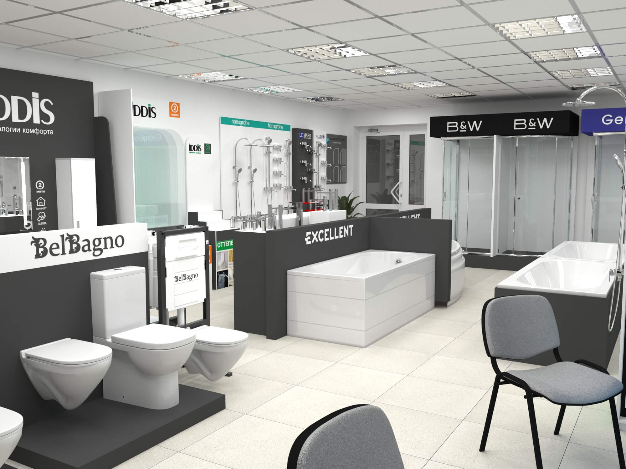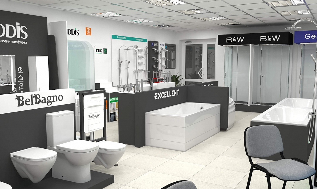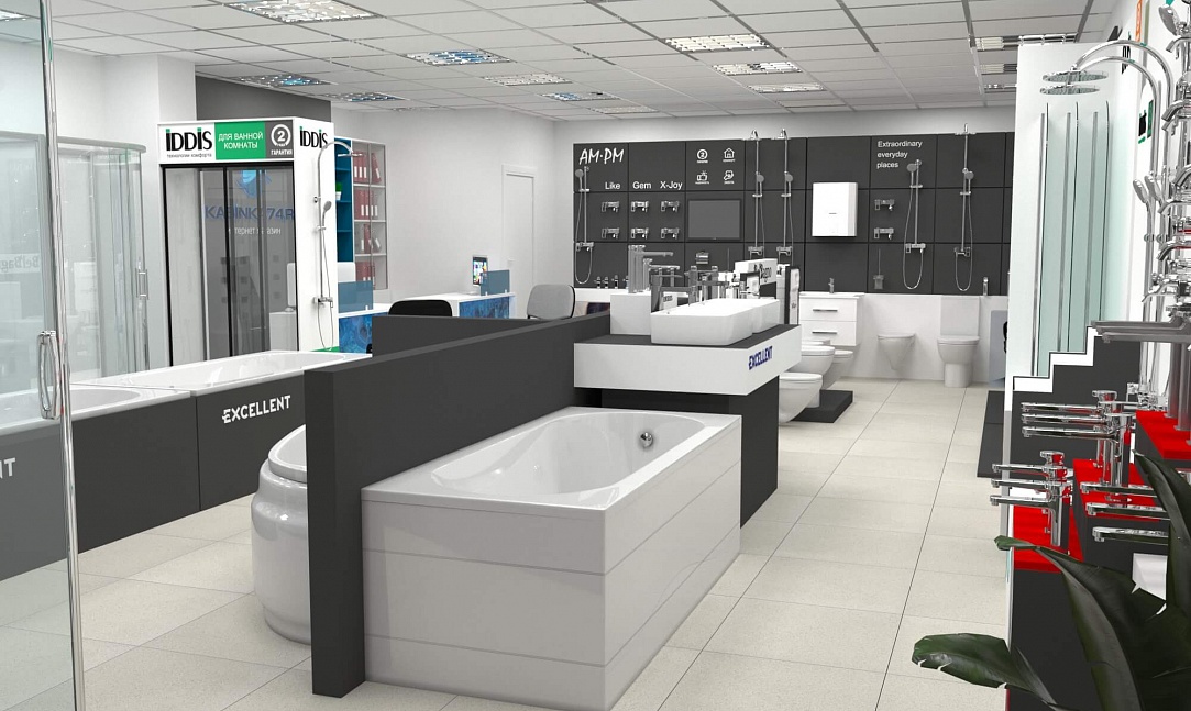 Задача - разработать общую концепцию дизайна стеллажей, предоставляемых магазину разными поставщиками, дизайн рабочего места