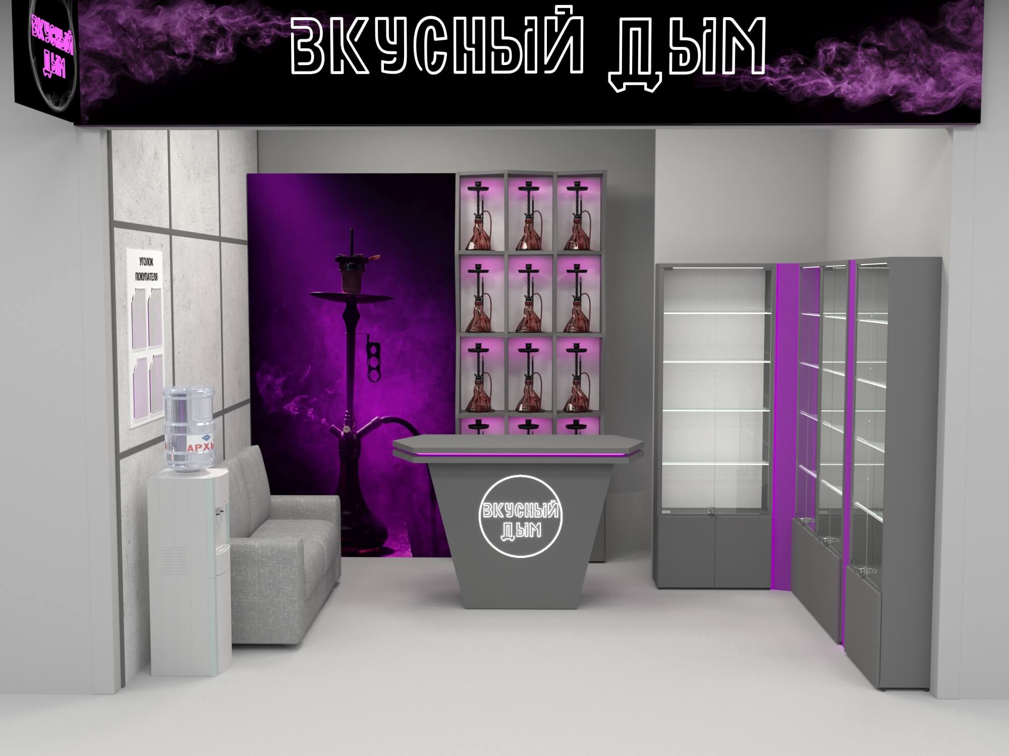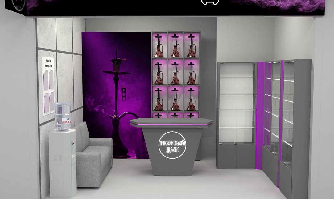 Задача - разработать дизайн интерьера и входную группу для магазина курительных смесей "Вкусный дым"