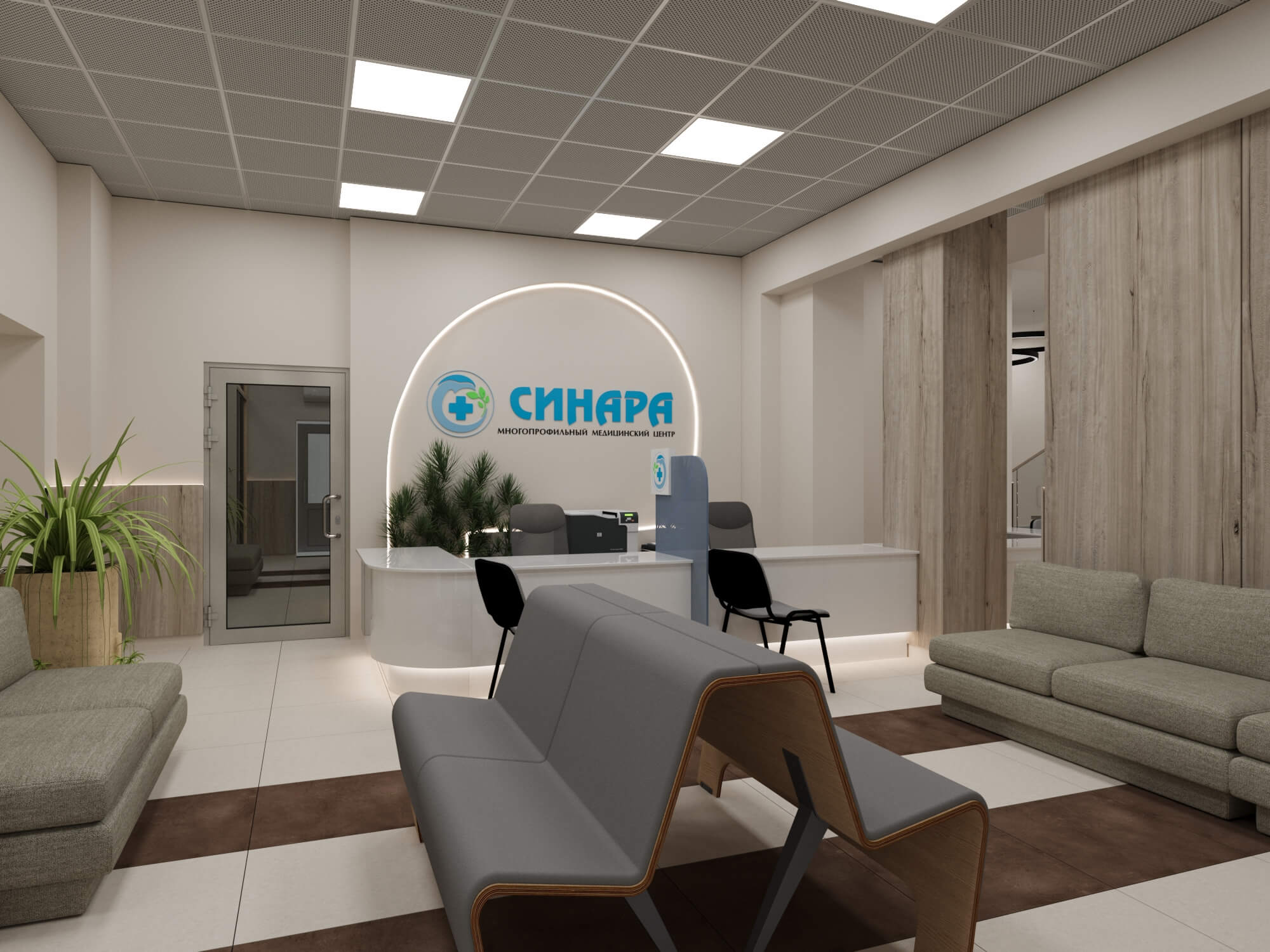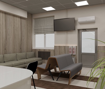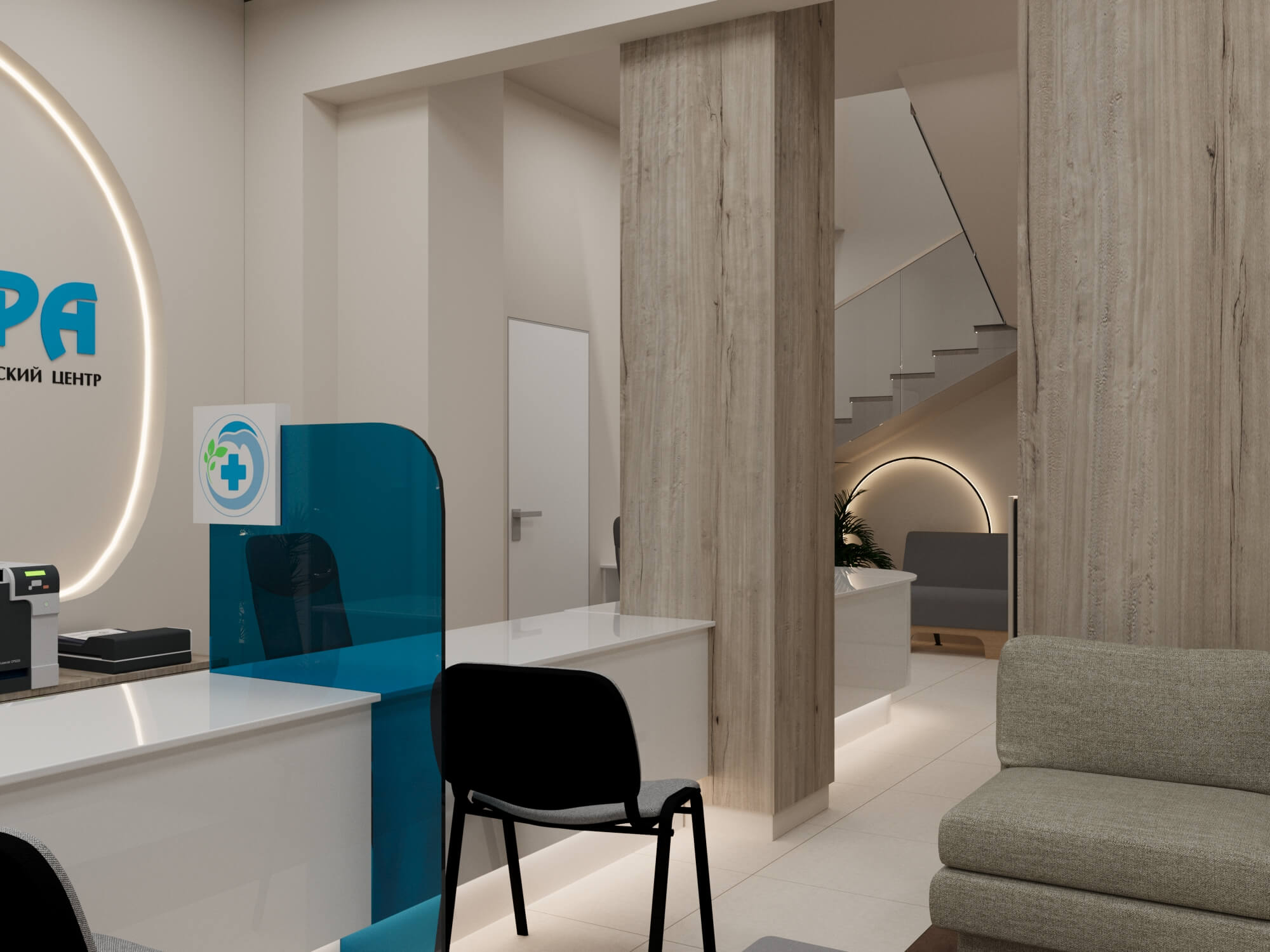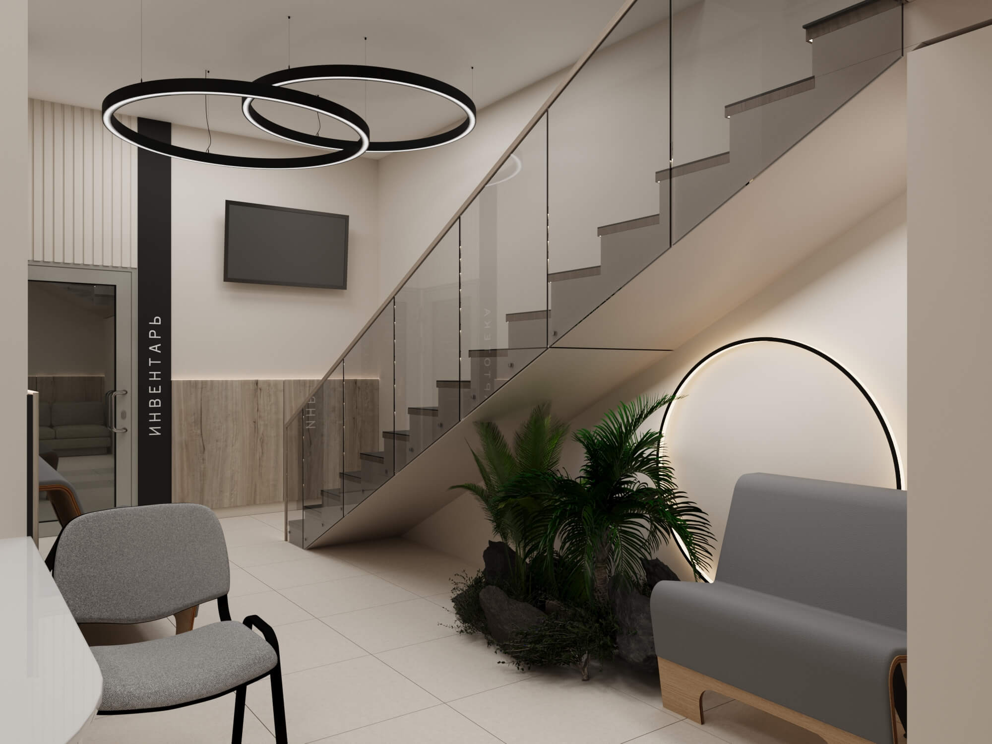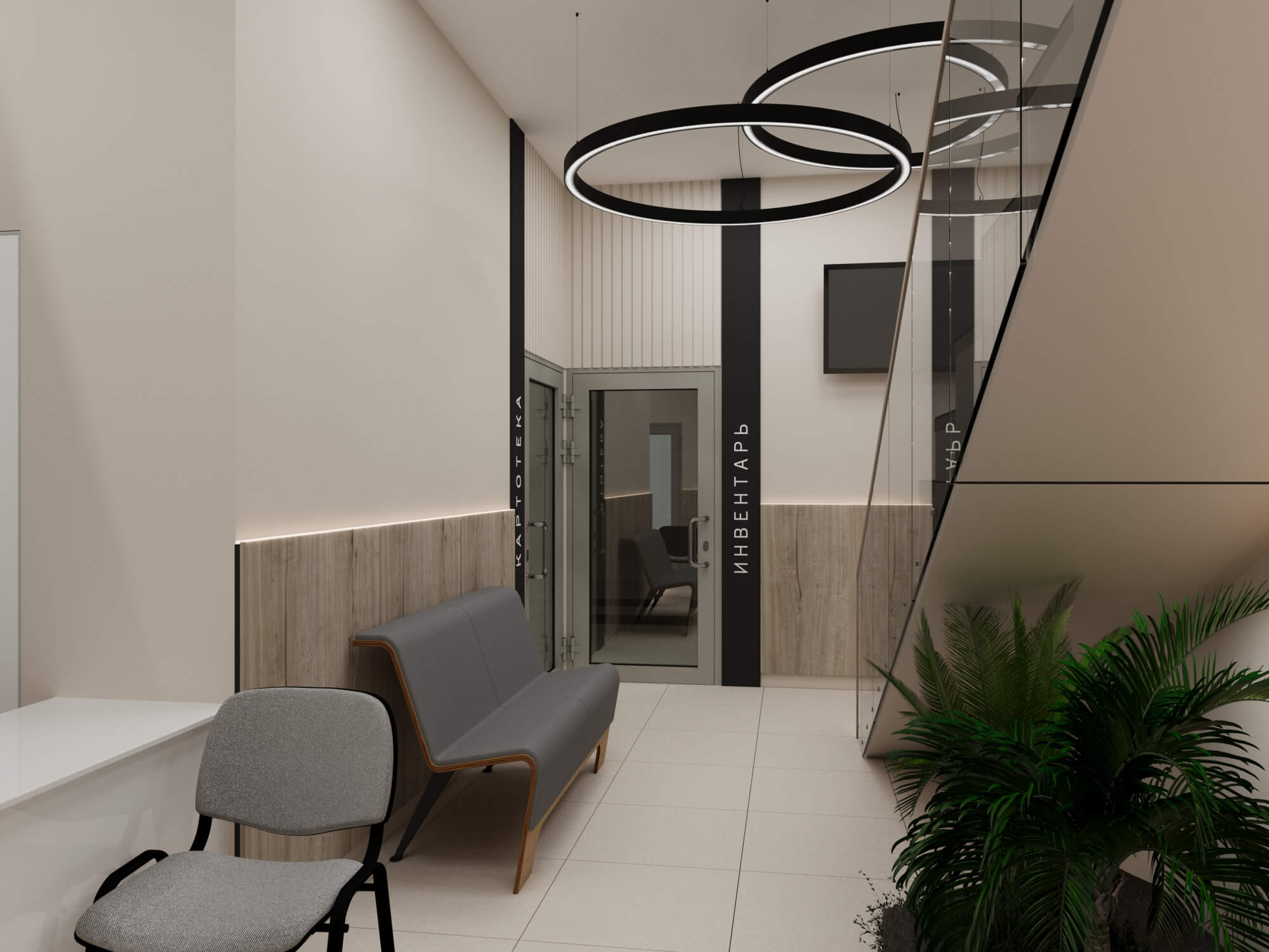 Задача - разработать современный дизайн холла и зоны рецепции после перепланировки пространства.