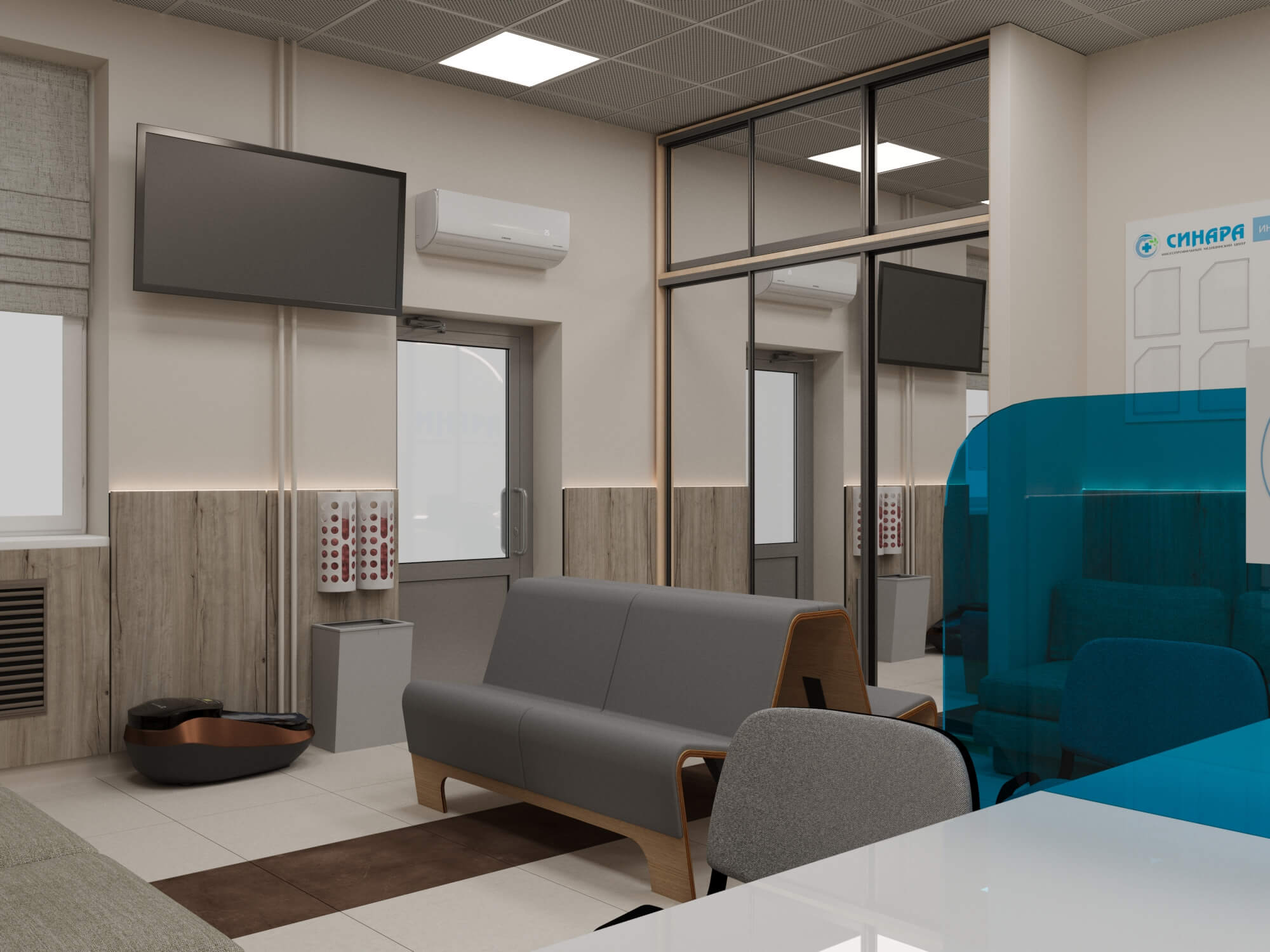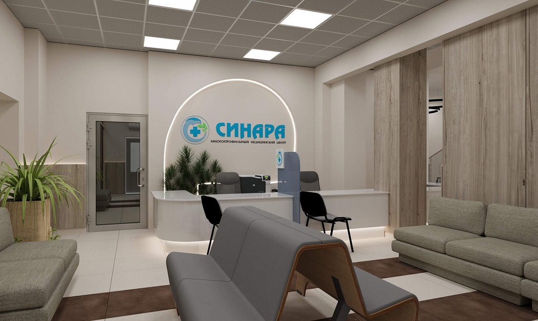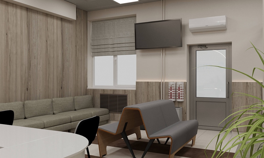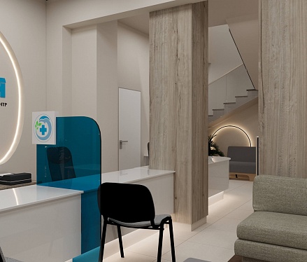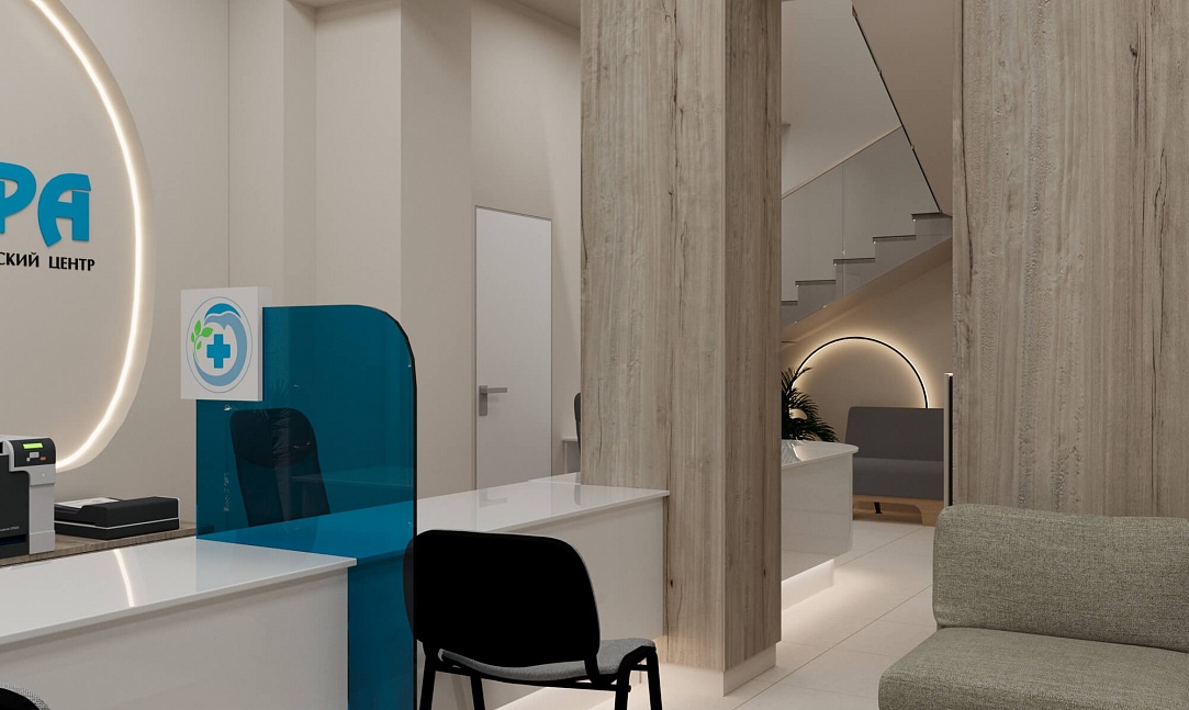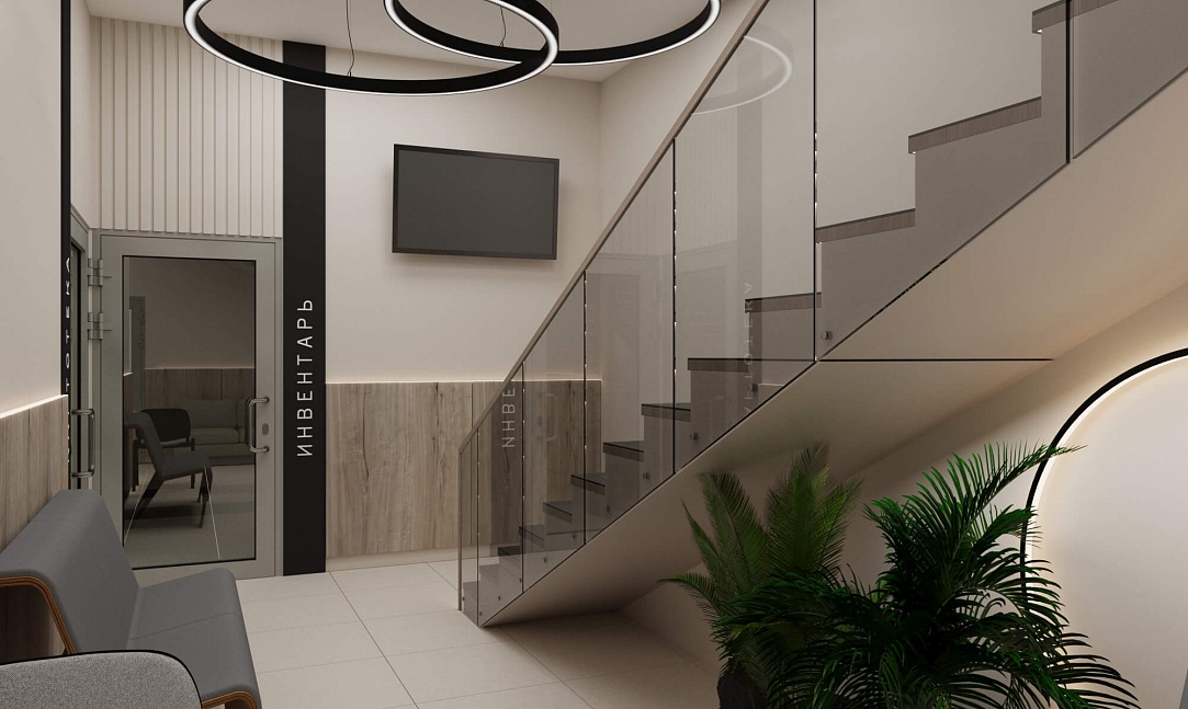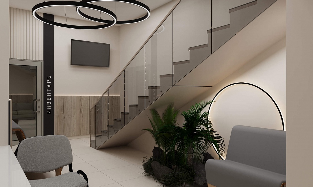 Задача - разработать современный дизайн холла и зоны рецепции после перепланировки пространства.