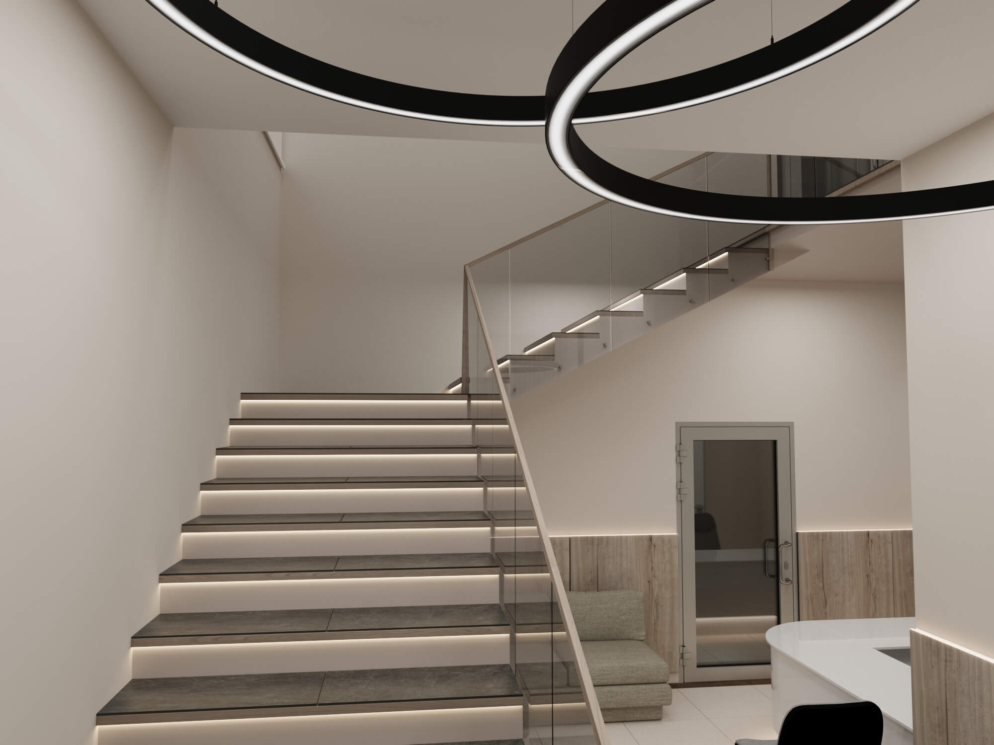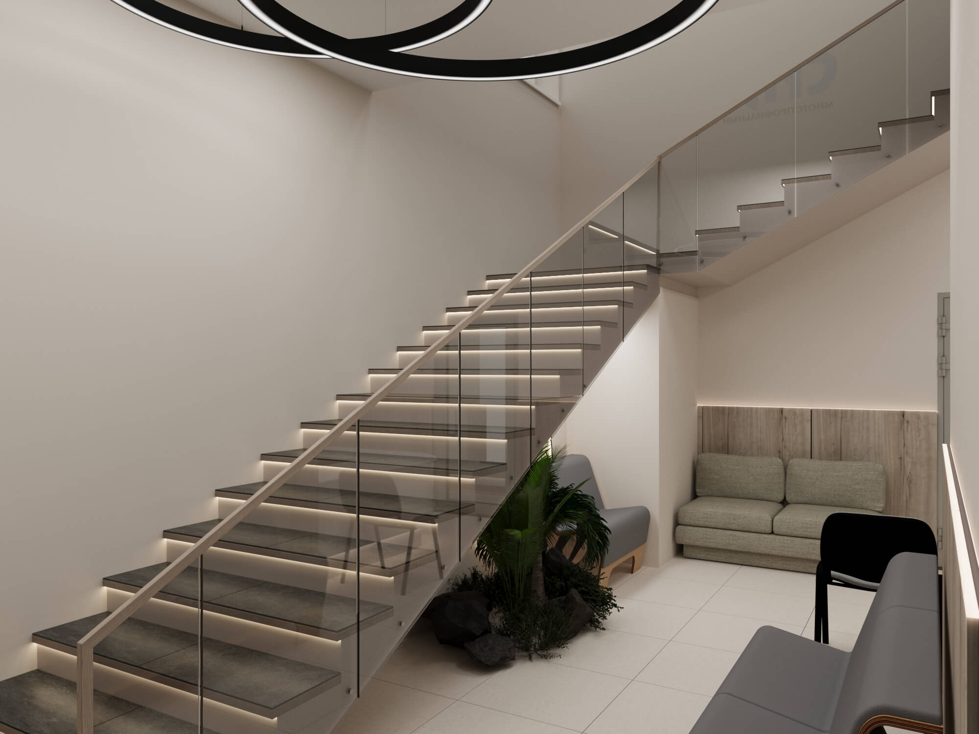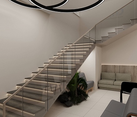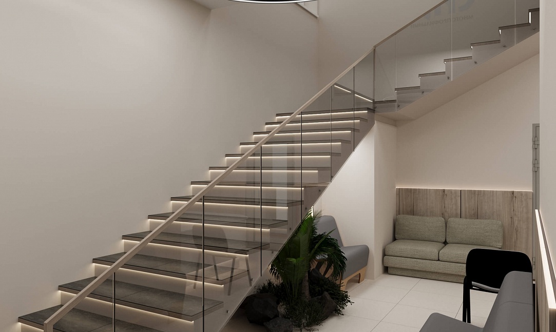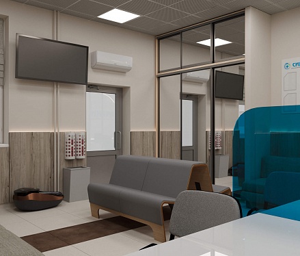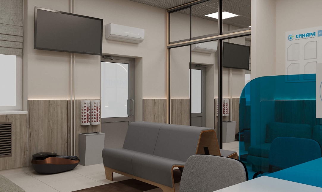 Задача - разработать современный дизайн холла и зоны рецепции после перепланировки пространства.