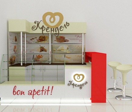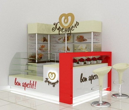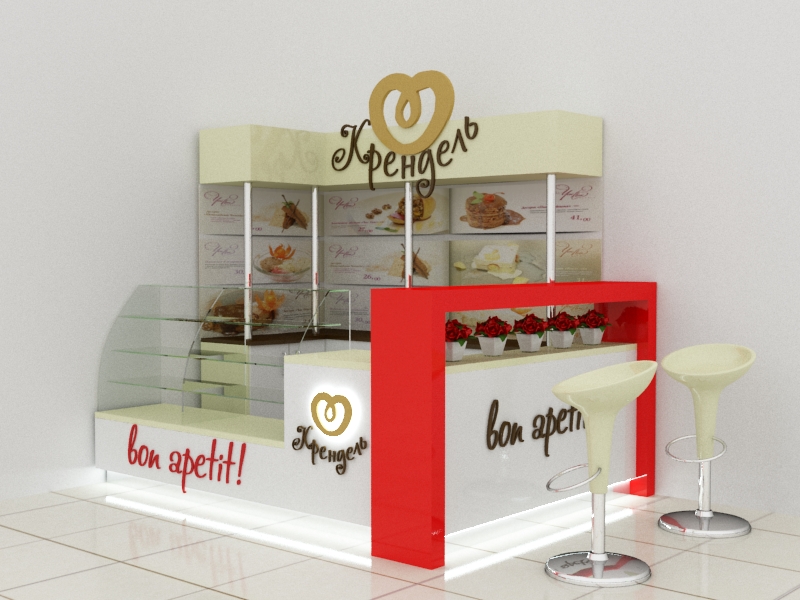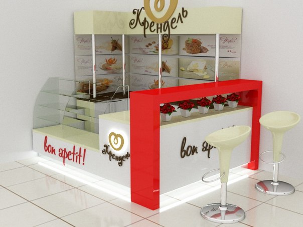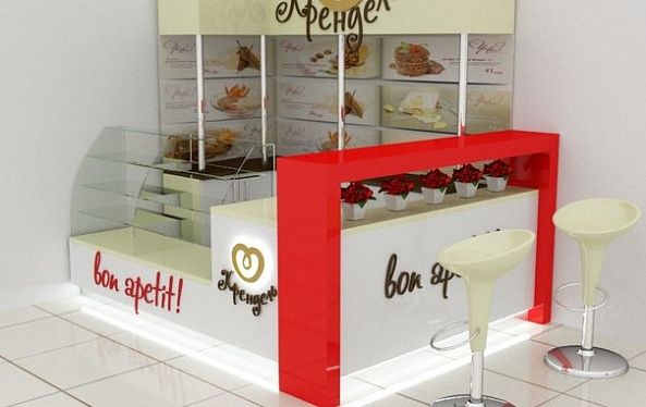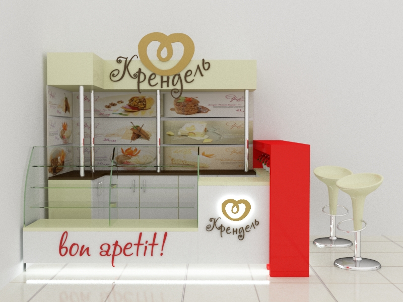 Задача - визуализация торгового оборудования, разработать фирменные цвета, расставить технологическое оборудование