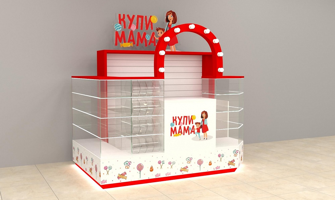 Задача - разработать яркий и привлекающий детей дизайн торговой точки.