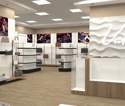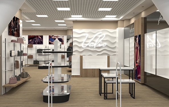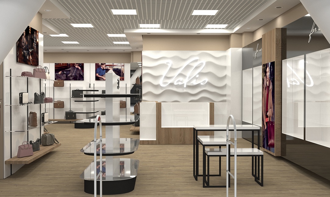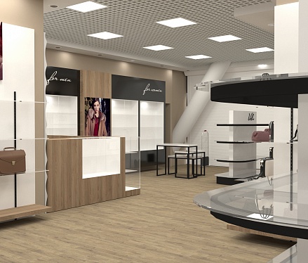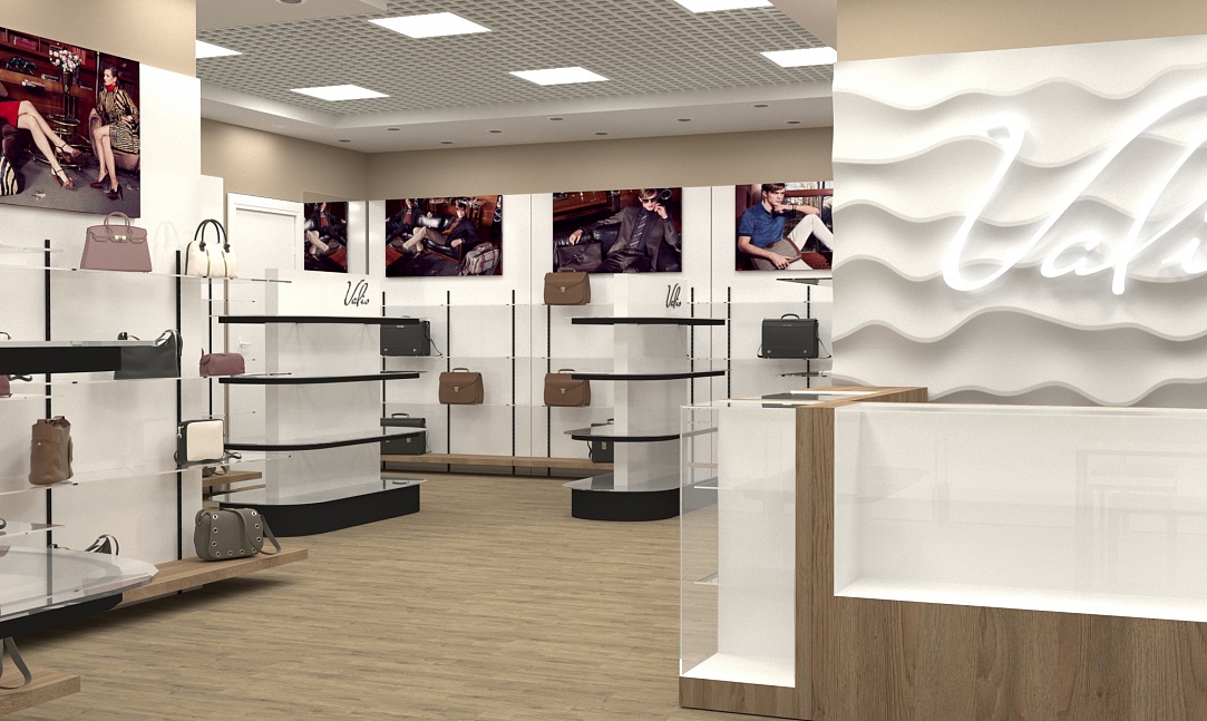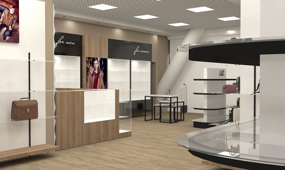 Задача - разработать дизайн интерьера магазина кожгалантереи.