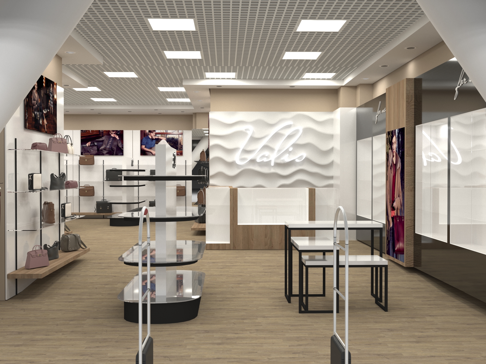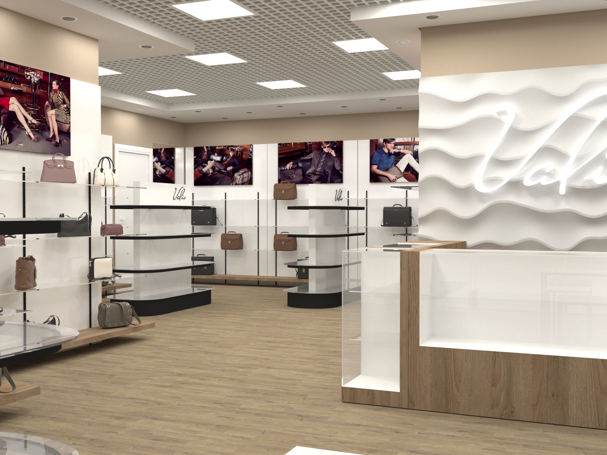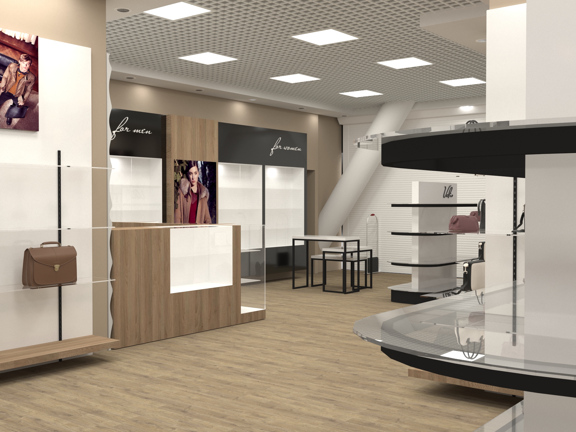 Задача - разработать дизайн интерьера магазина кожгалантереи.