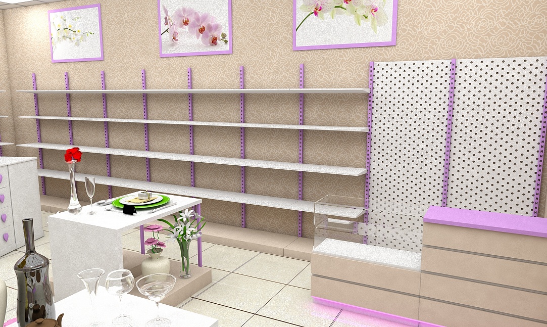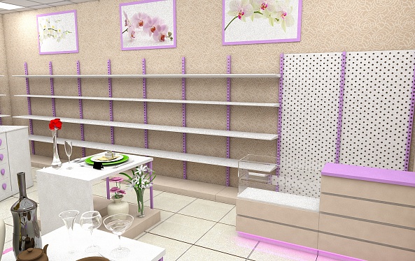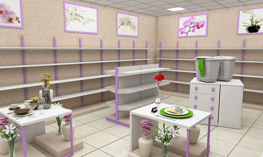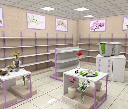 Задача - разработать интерьер магазина, подобрать торговое оборудование