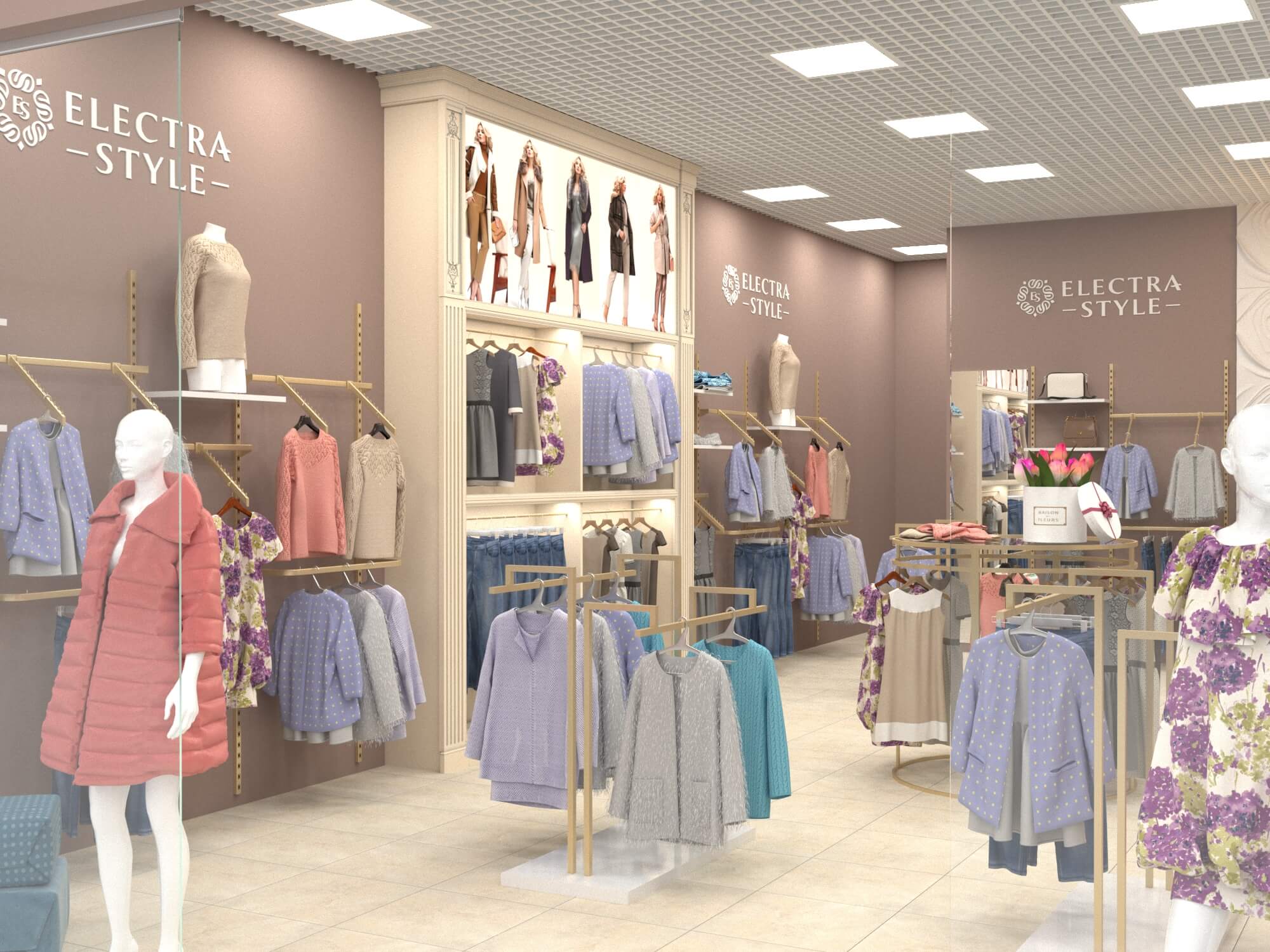 Задача - разработать дизайн торговой площади магазина женской одежды "Electra style"