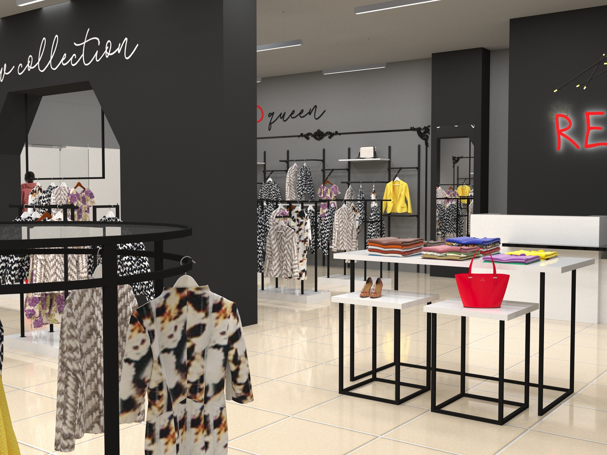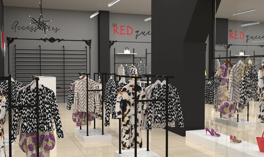 Задача - разработать дизайн интерьера магазина одежды, разработать логотип, проект для согласования с ТК