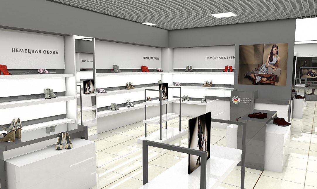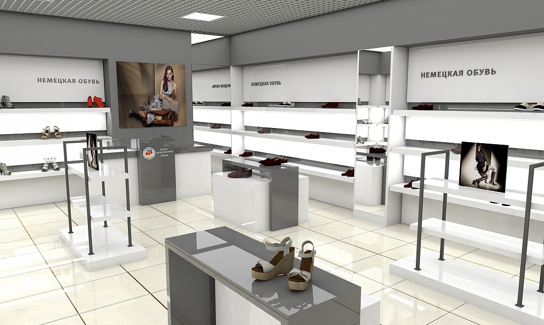 Задача - разработать дизайн проект интерьера магазина обуви