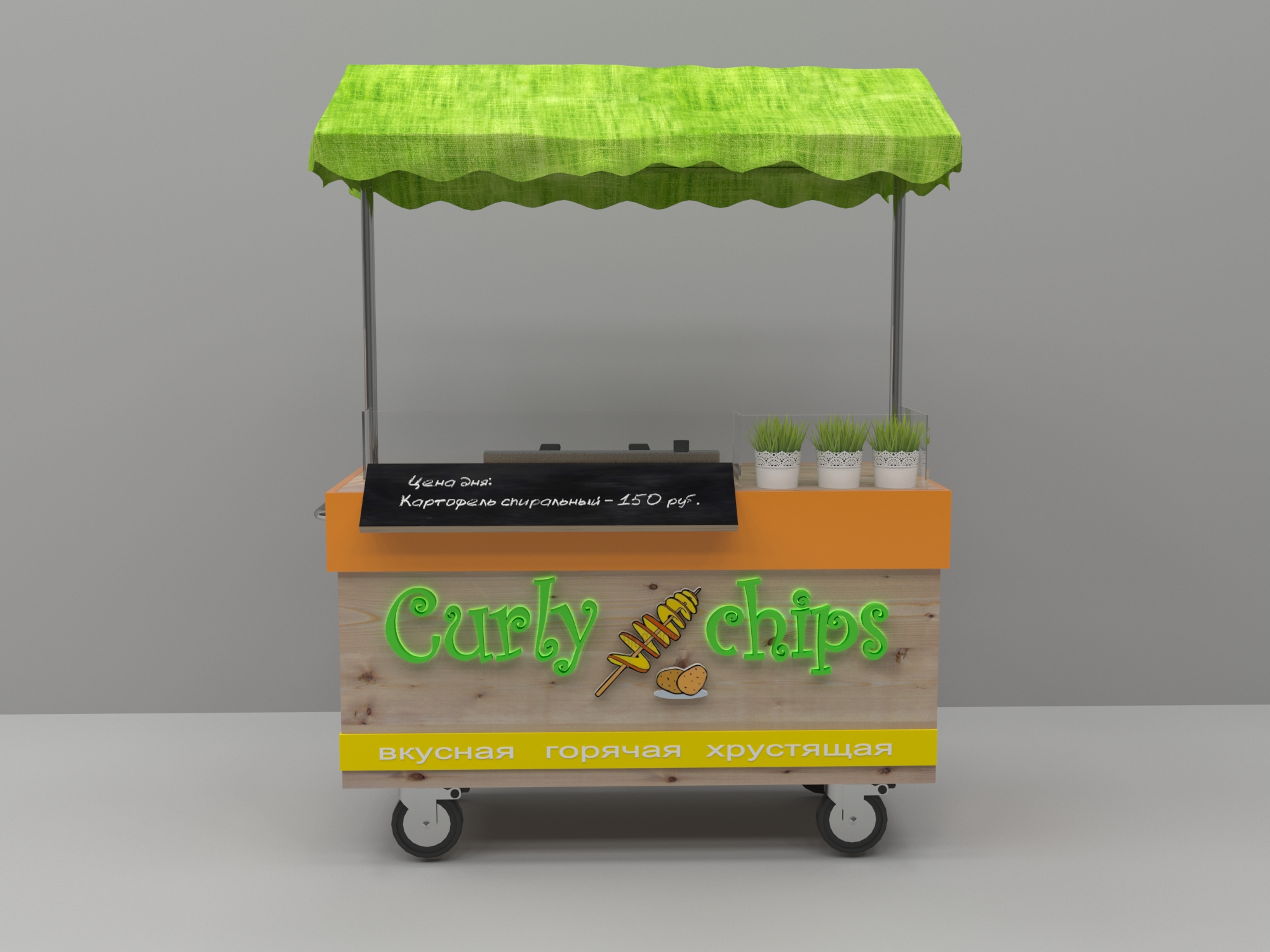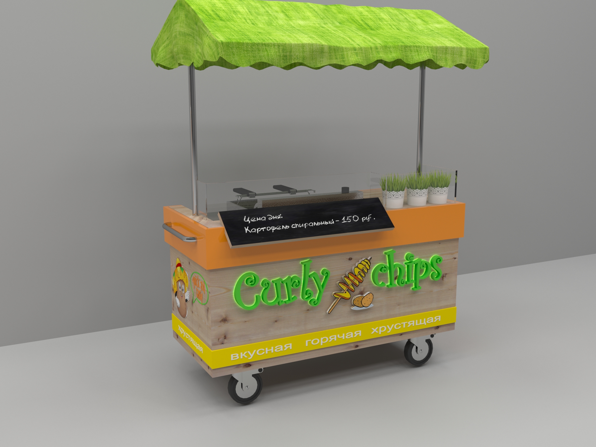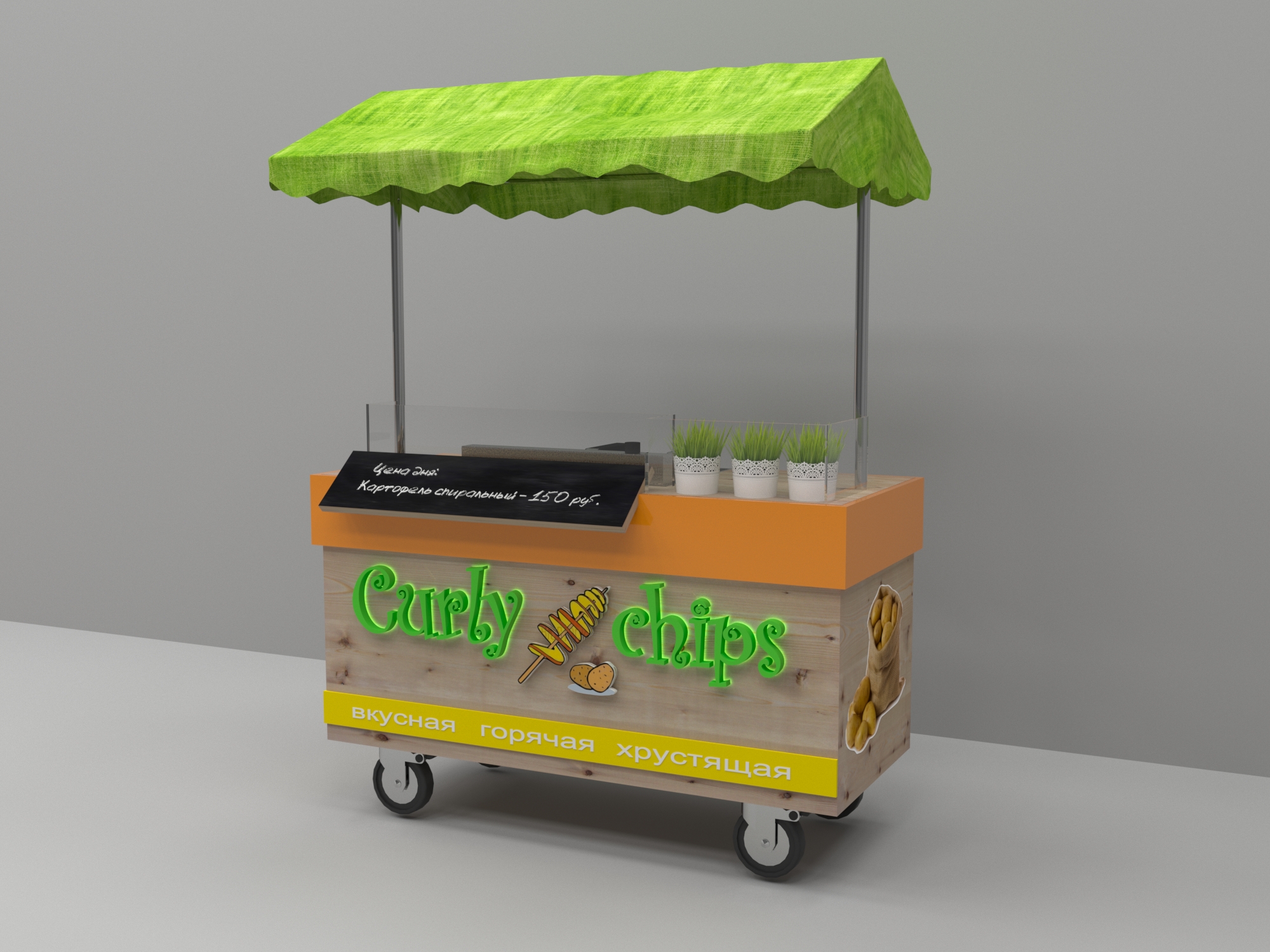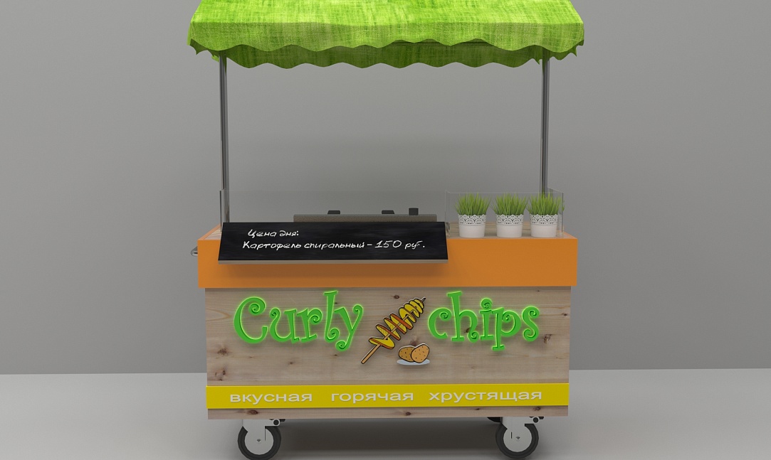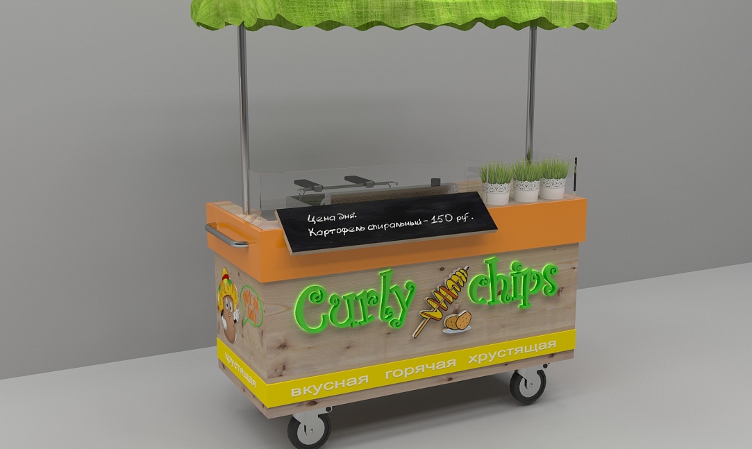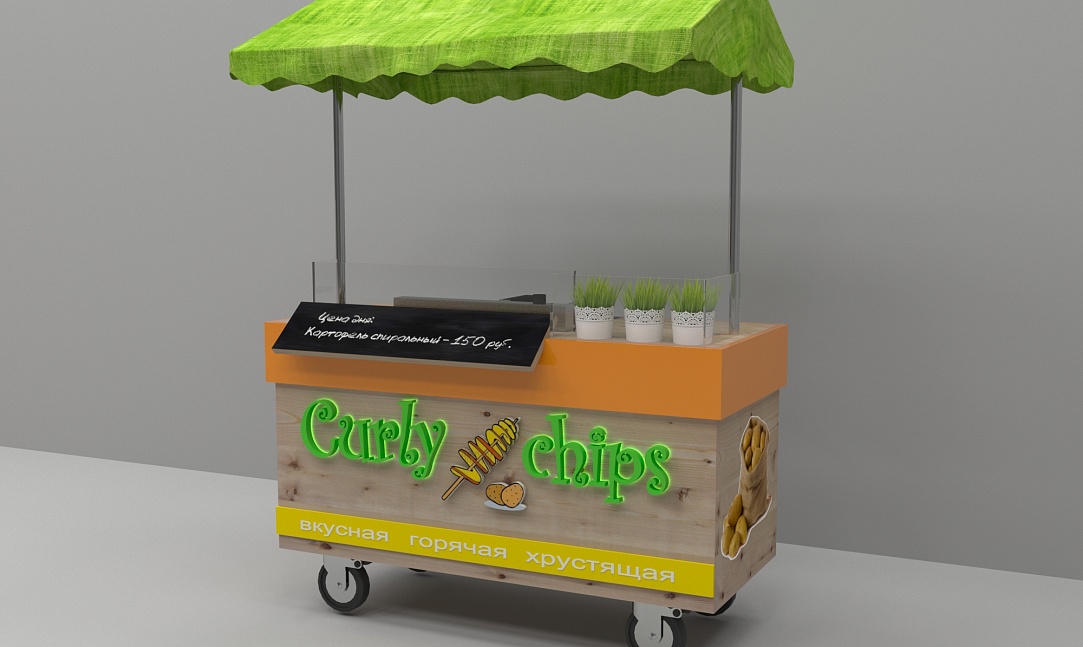 Задача - разработать яркую современную концепцию для передвижной тележки с картофельными чипсами, логотип