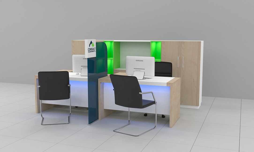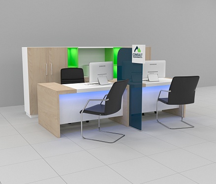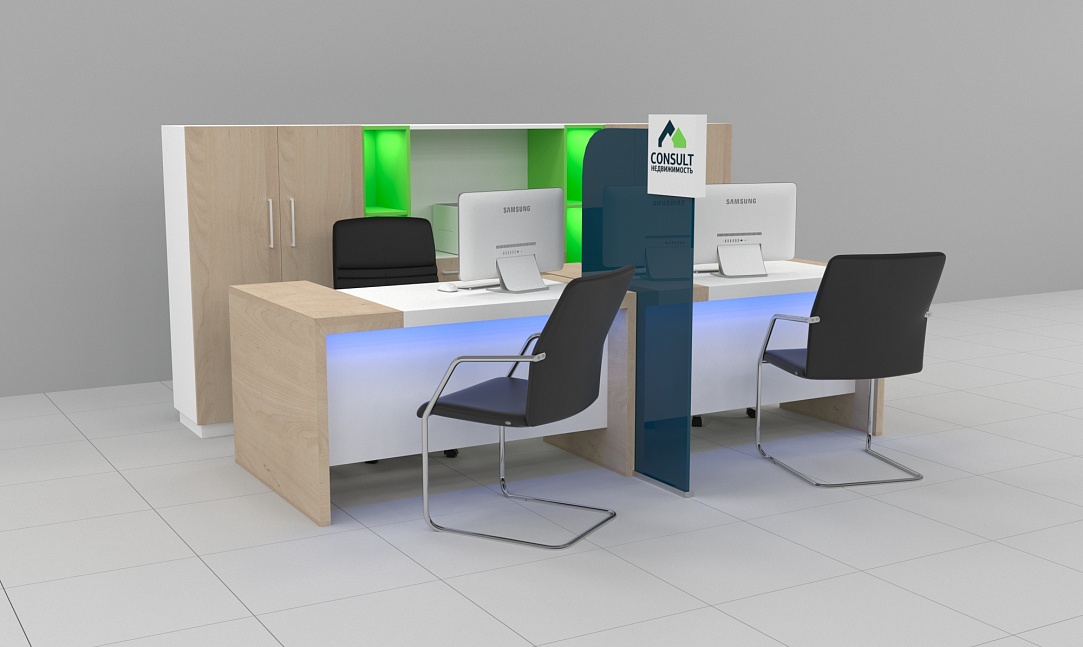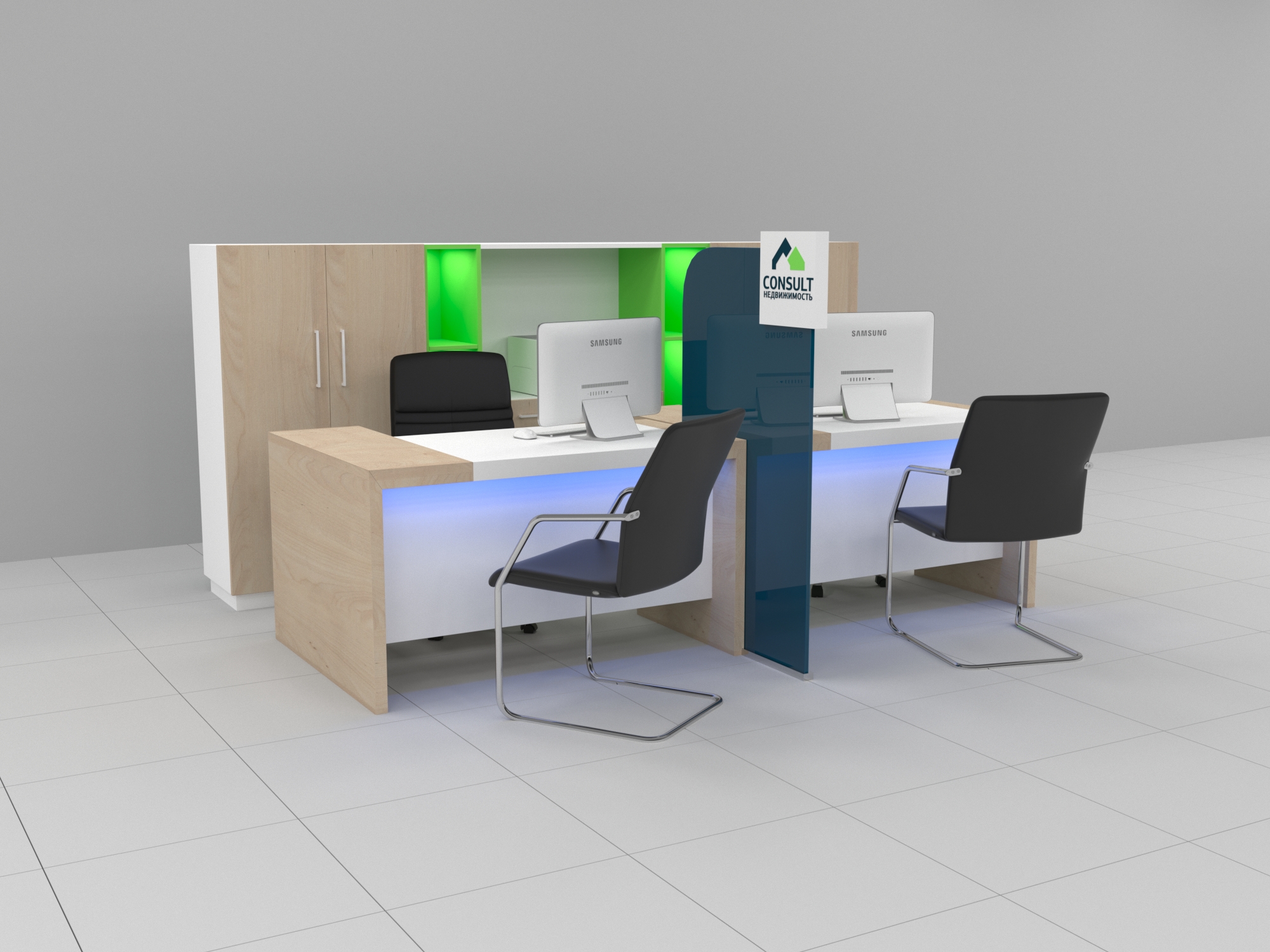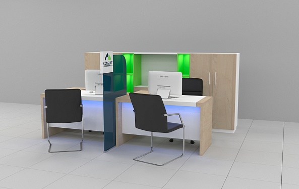 Задача - разработать точку продаж для ТК "КС". Обеспечить удобное рабочее место для менеджеров. Оформит отдел в соответствии с бренд буком.