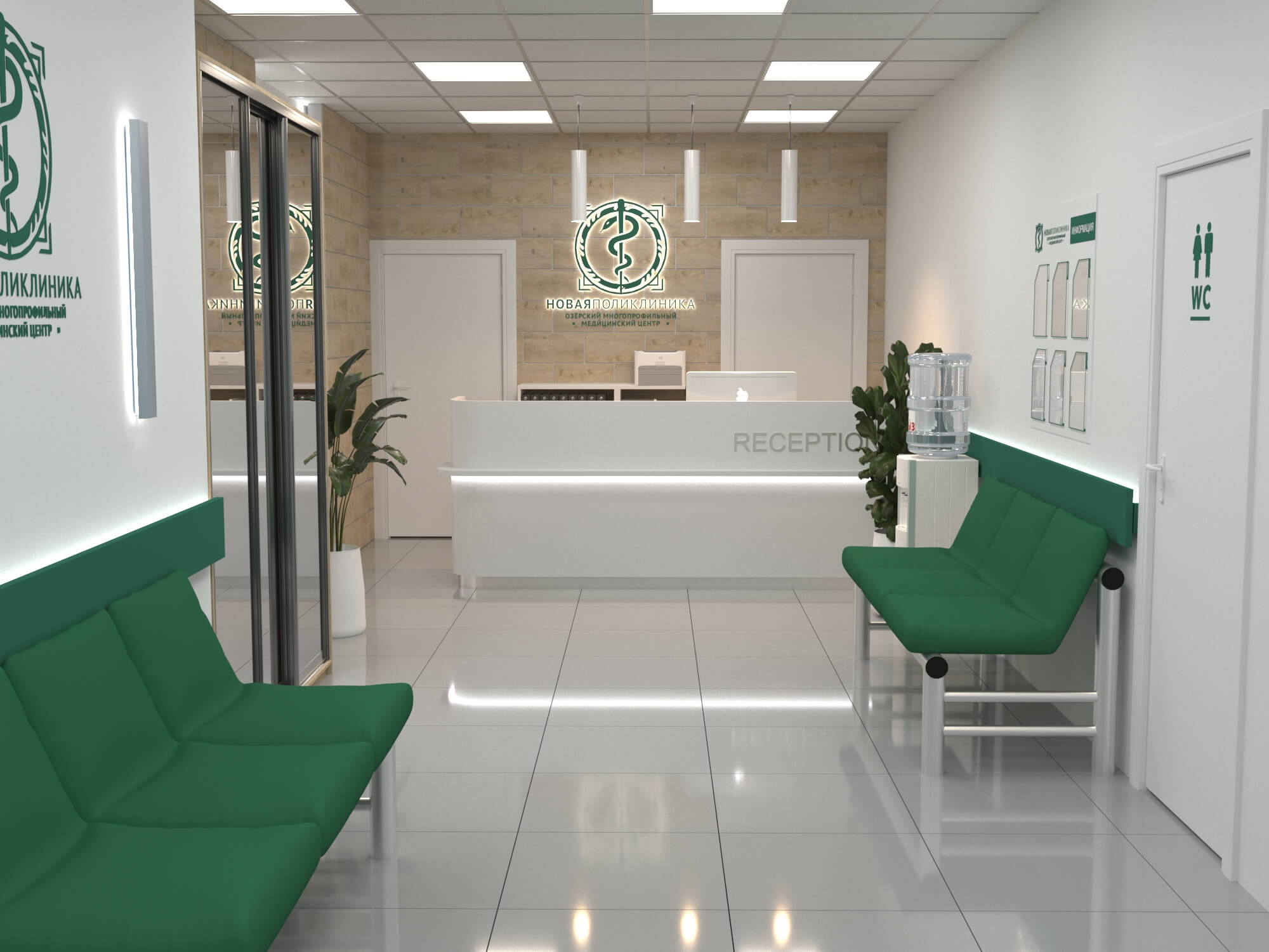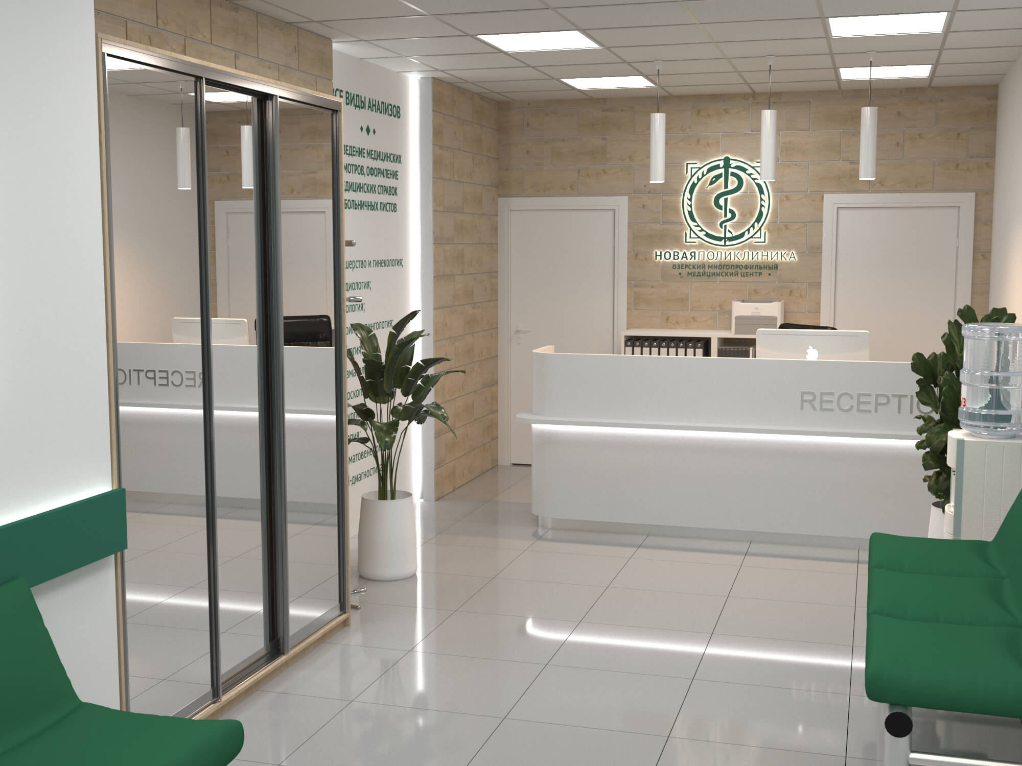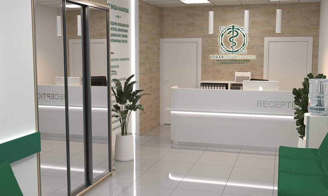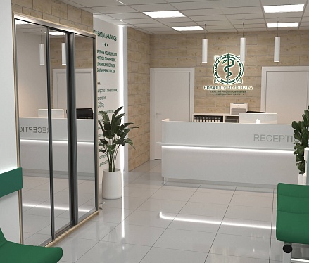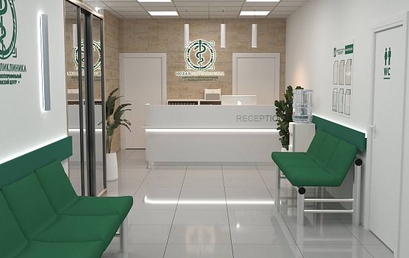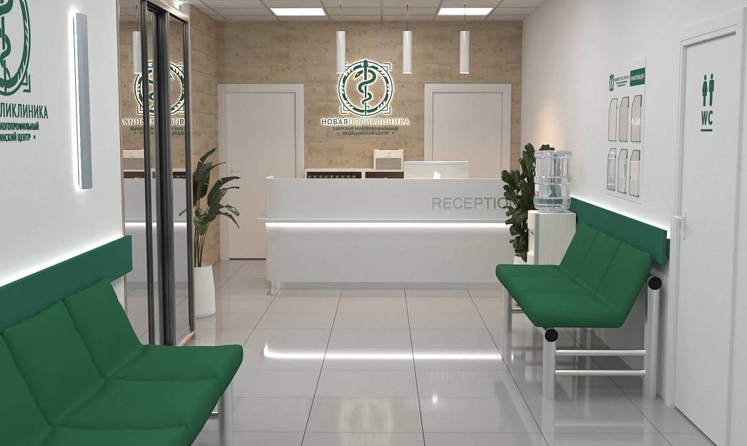 Зона ресепшн поликлиники "НОВАЯ ПОЛИКЛИНИКА "