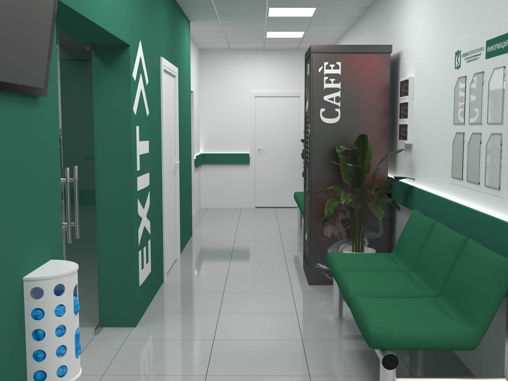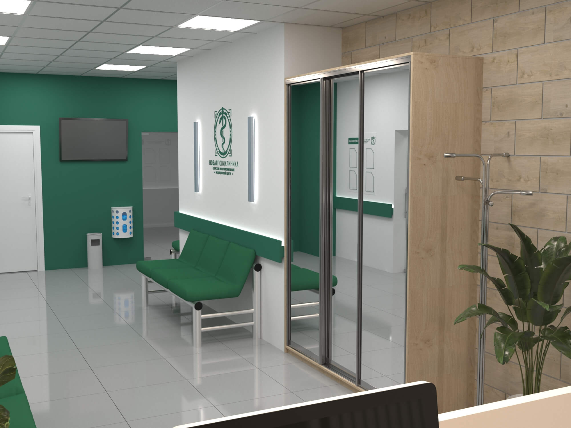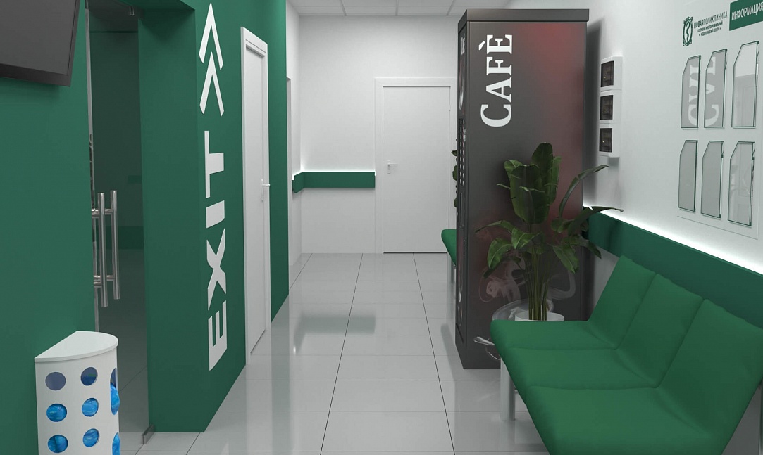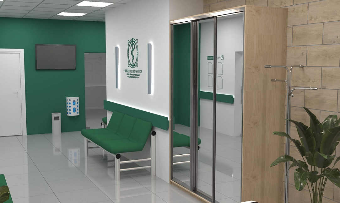 Зона ресепшн поликлиники "НОВАЯ ПОЛИКЛИНИКА "