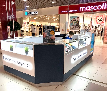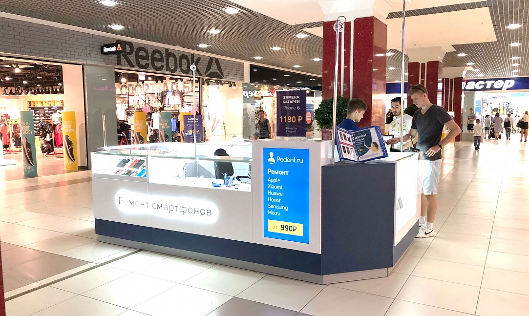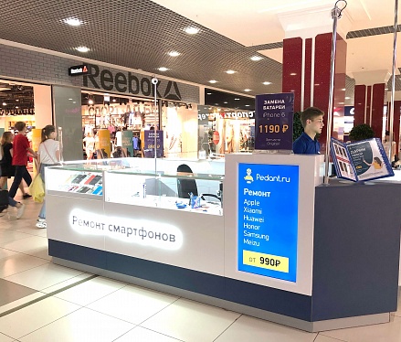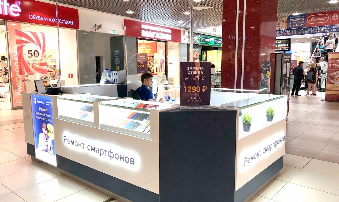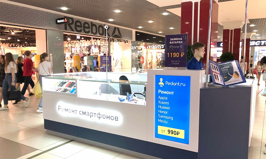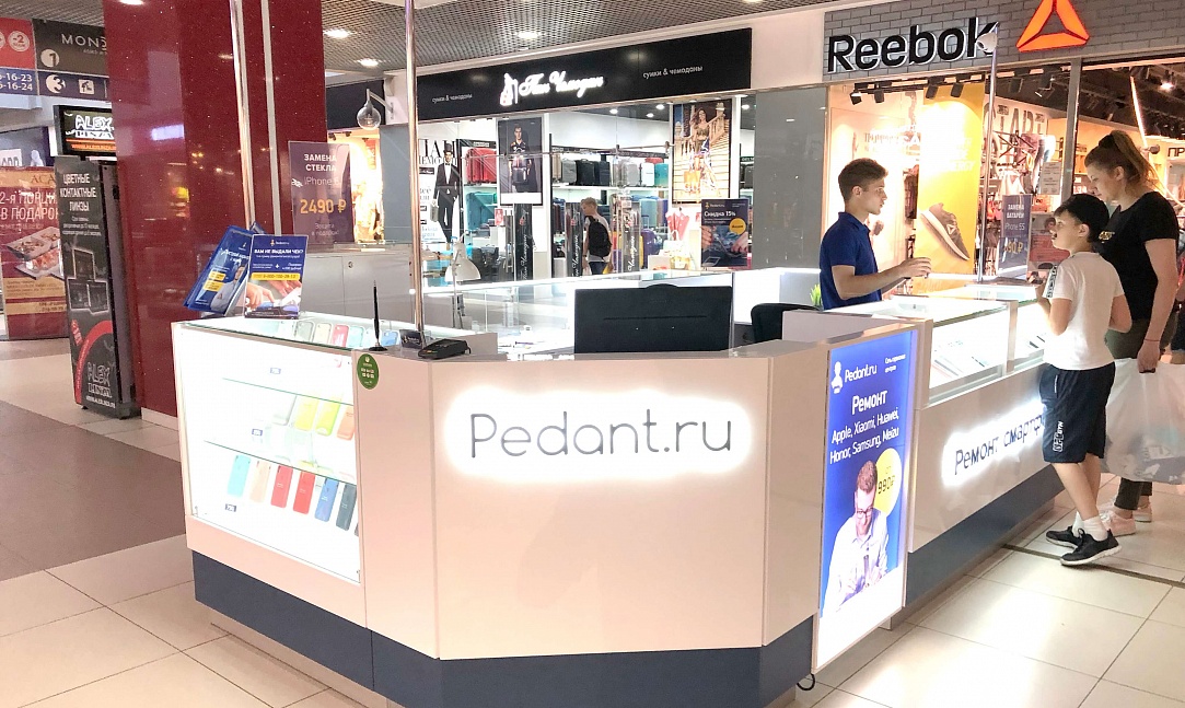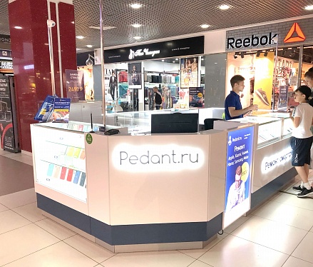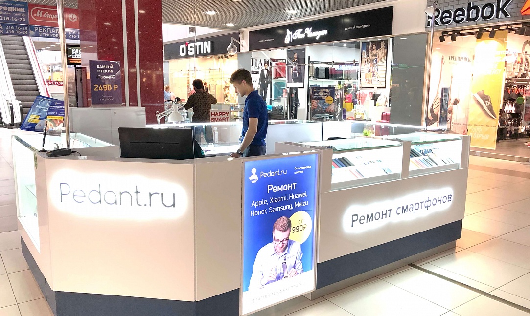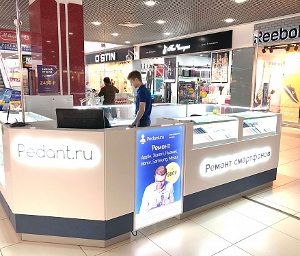 Как говорится: "дело мастера боится", и мы это прекрасно понимали при создании дизайна сервисных центров "Pedant". Для этого мы использовали современную систему освещения, способную поддерживать необходимый уровень яркости длительное время во время работы специалиста. А также разместили функциональные отделы для хранения комплектующих и аксессуаров, которые необходимы при ремонте смартфонов и планшетов.