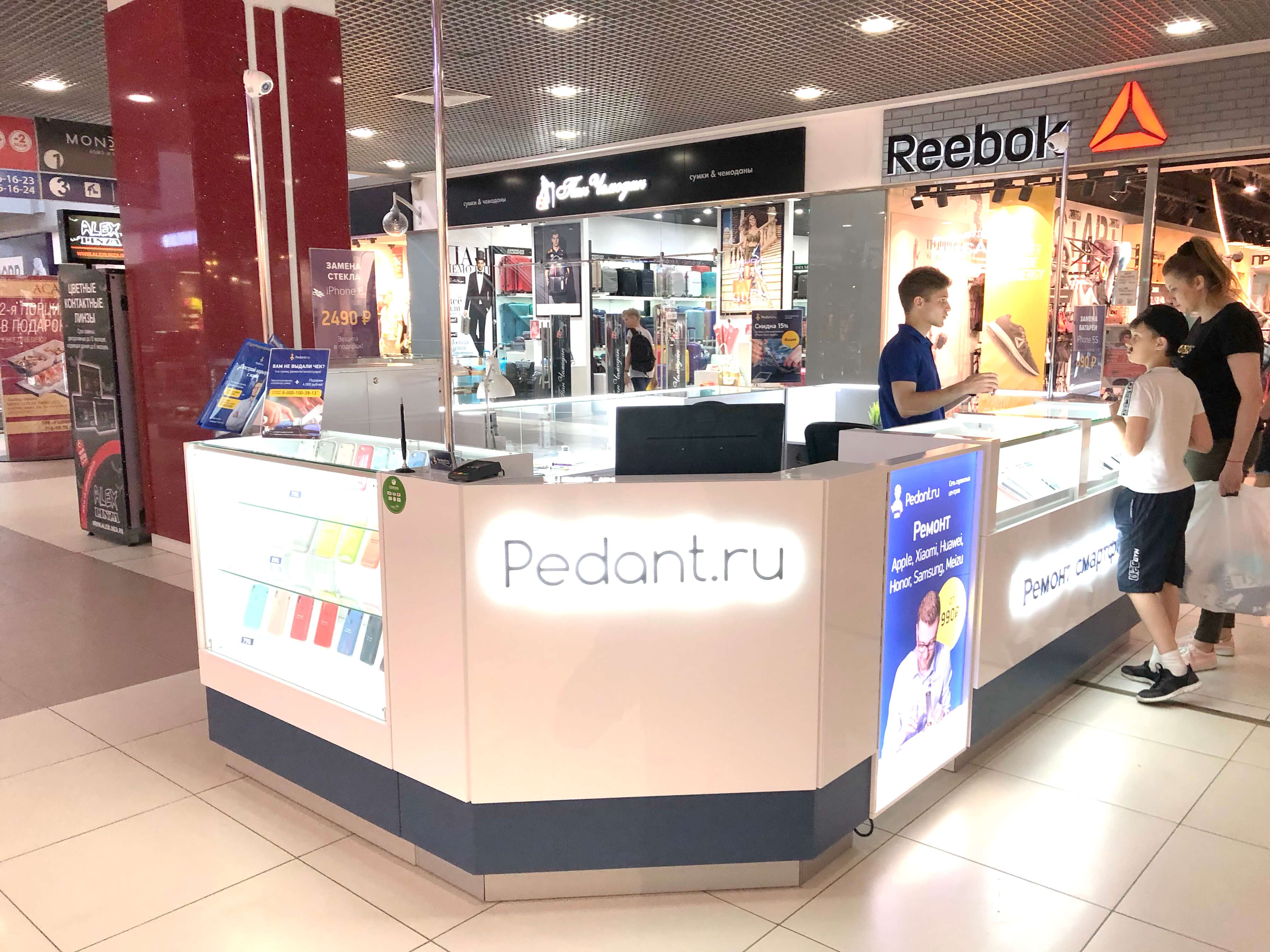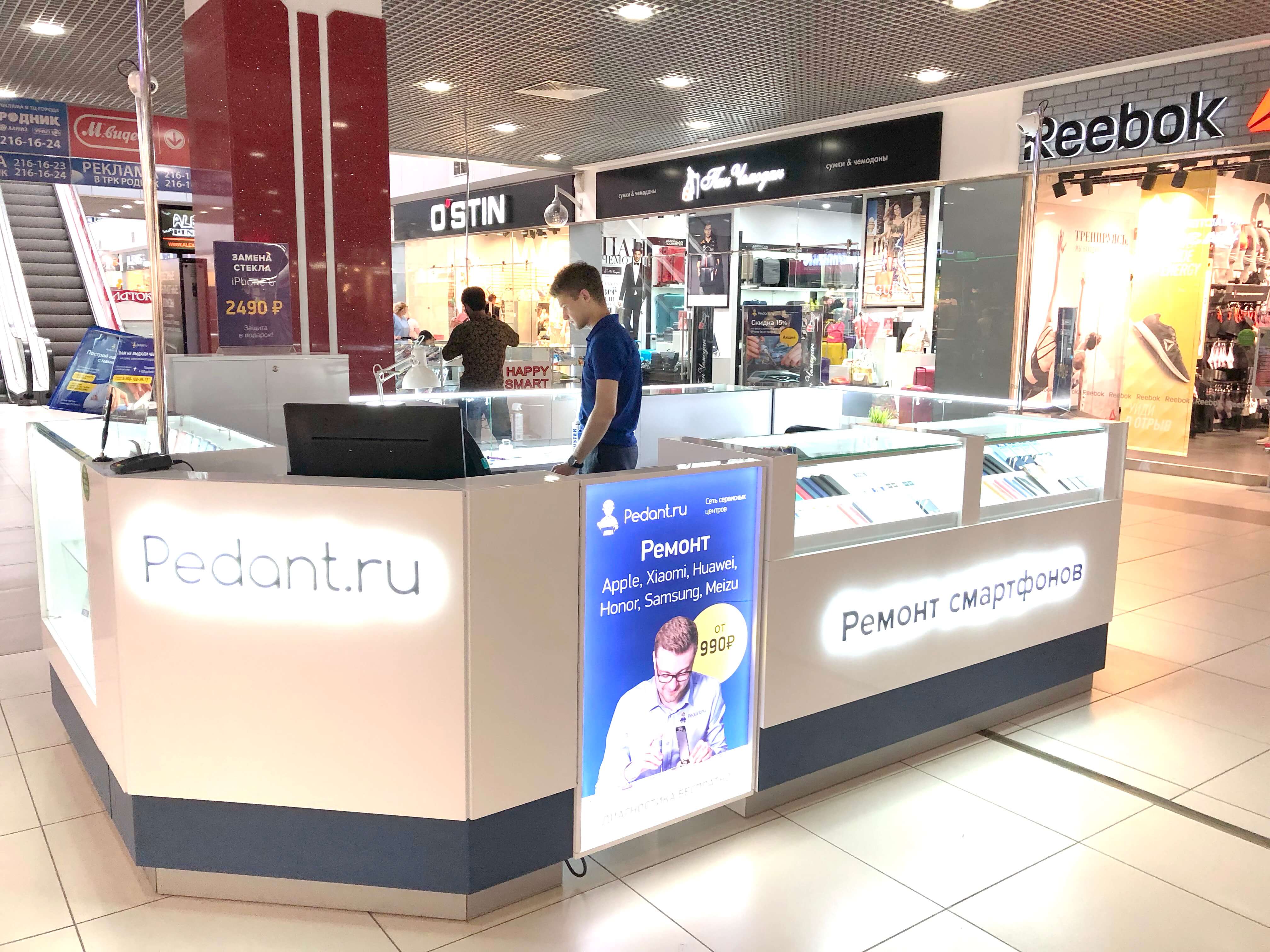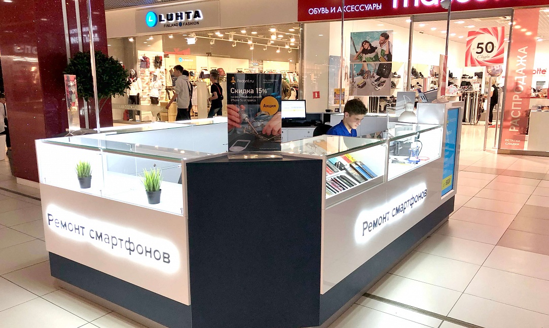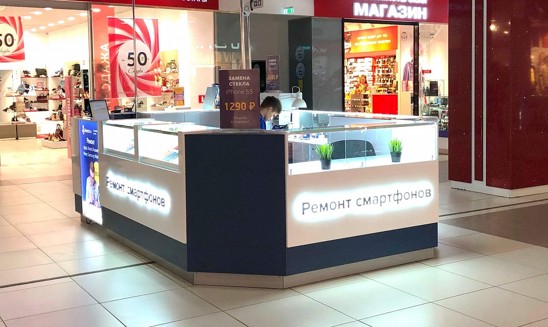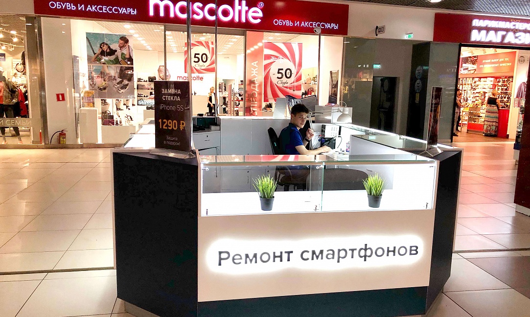 Как говорится: "дело мастера боится", и мы это прекрасно понимали при создании дизайна сервисных центров "Pedant". Для этого мы использовали современную систему освещения, способную поддерживать необходимый уровень яркости длительное время во время работы специалиста. А также разместили функциональные отделы для хранения комплектующих и аксессуаров, которые необходимы при ремонте смартфонов и планшетов.