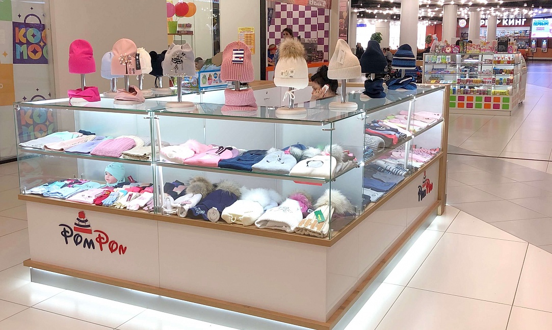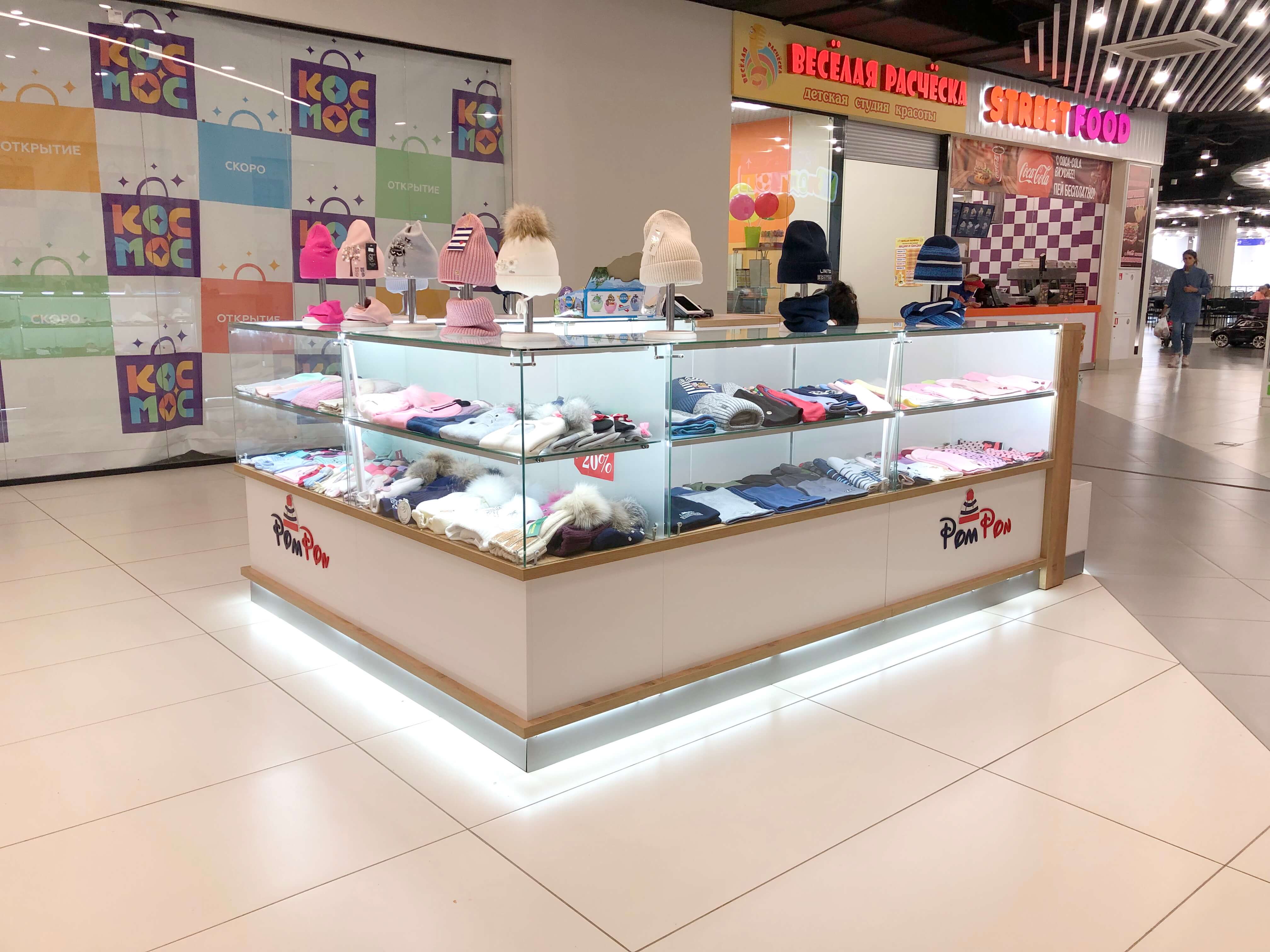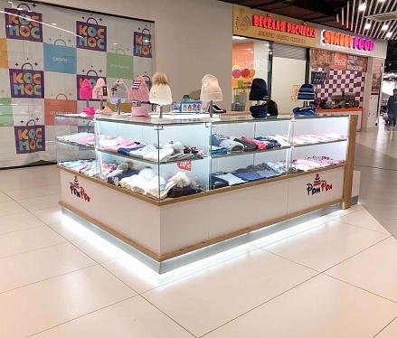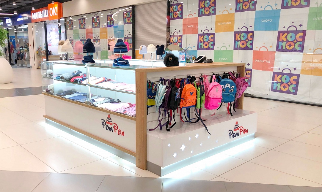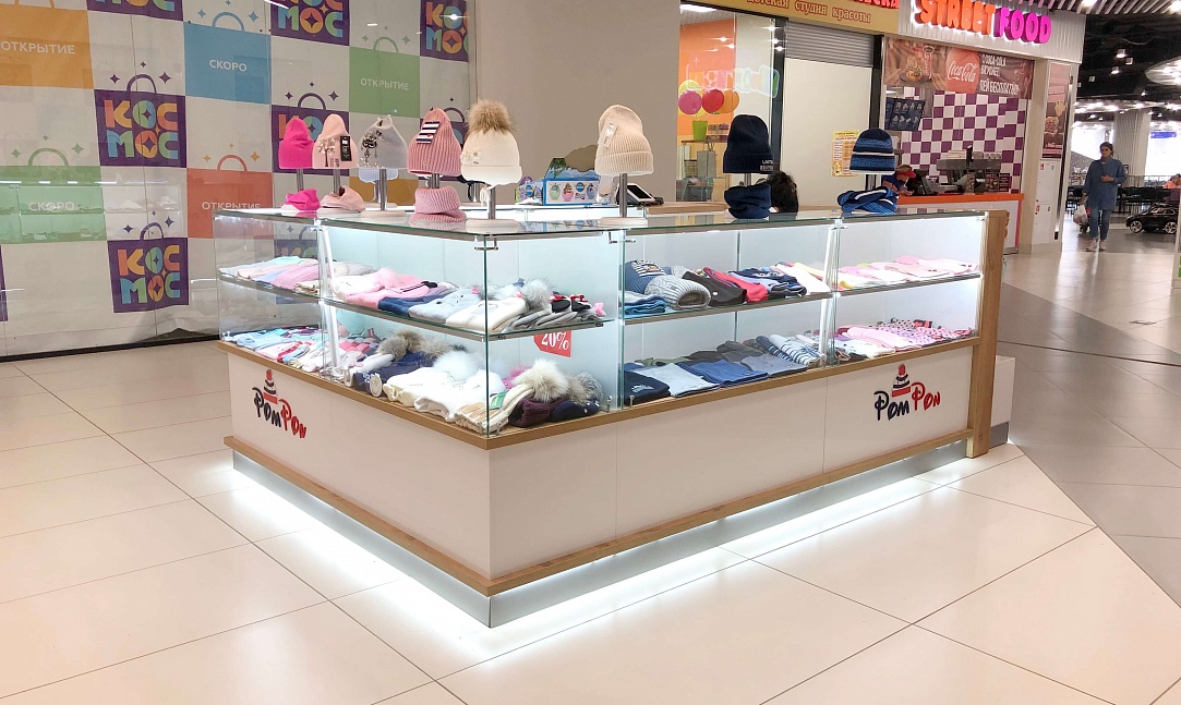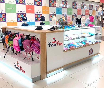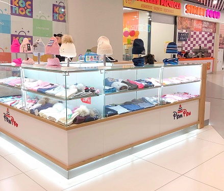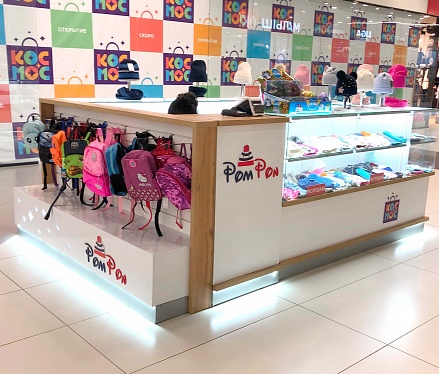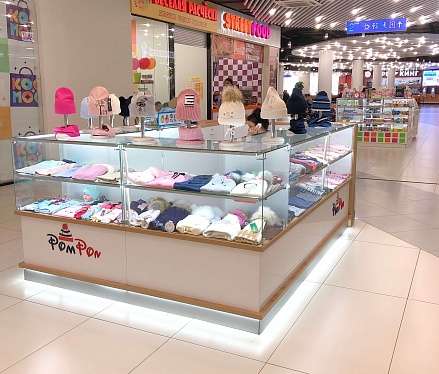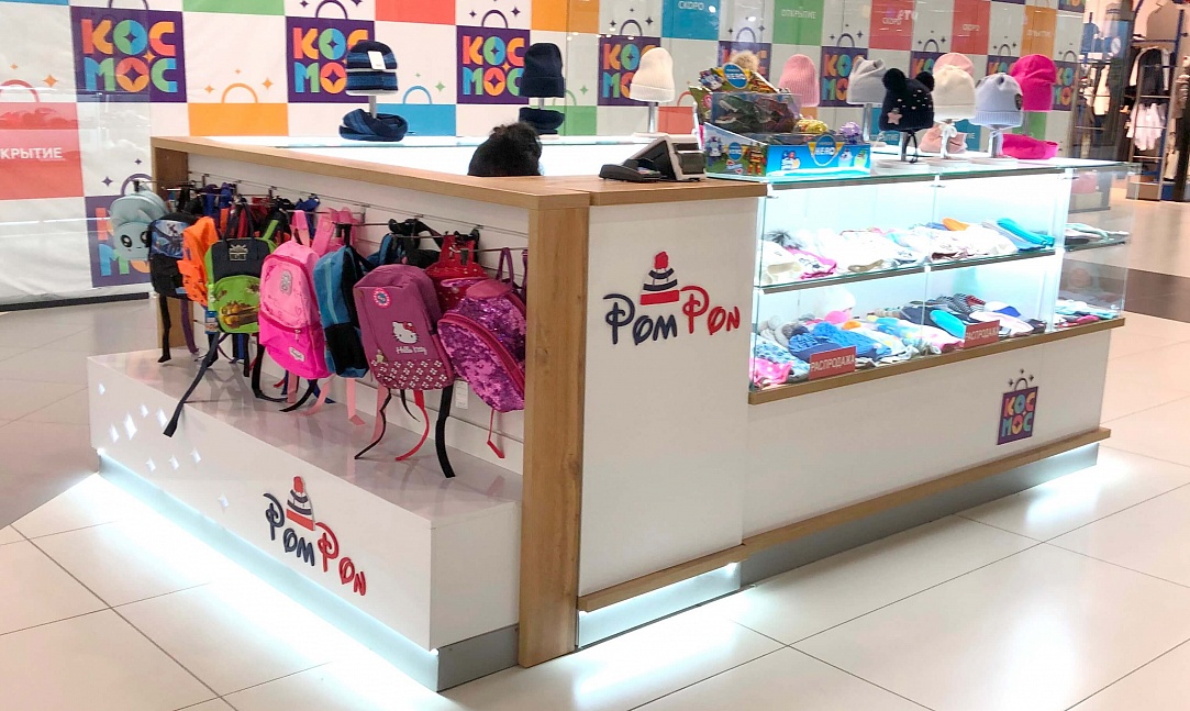 Маленький, яркий, и невероятно притягательный островной отдел реализовали наши специалисты в ТРК "Космос". Для этого мы учли: кронштейны для детских рюкзаков, выставочные платформы для шапок, открытые полки для одежды с непосредственным освещением и приятные глазу и на ощупь материалы, которые облагородят общий вид магазина детских вещей.