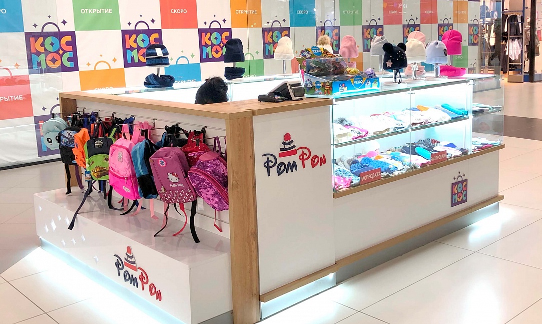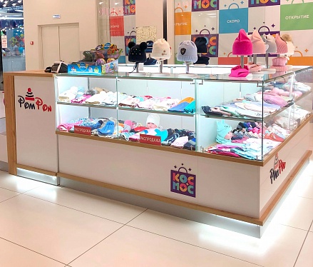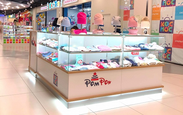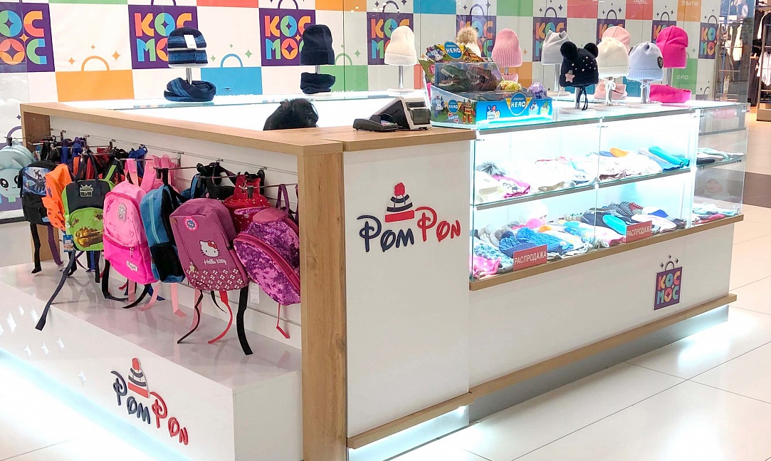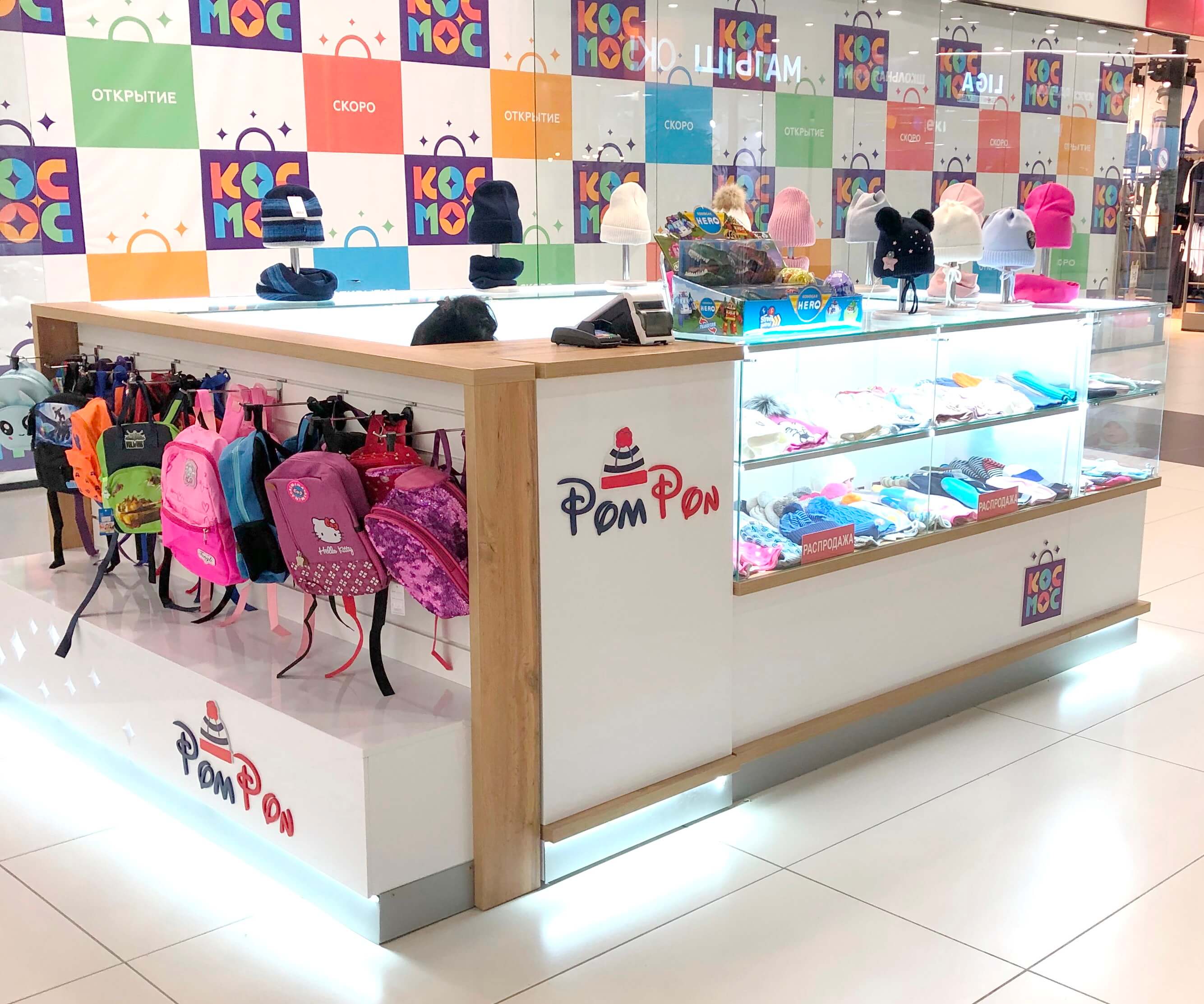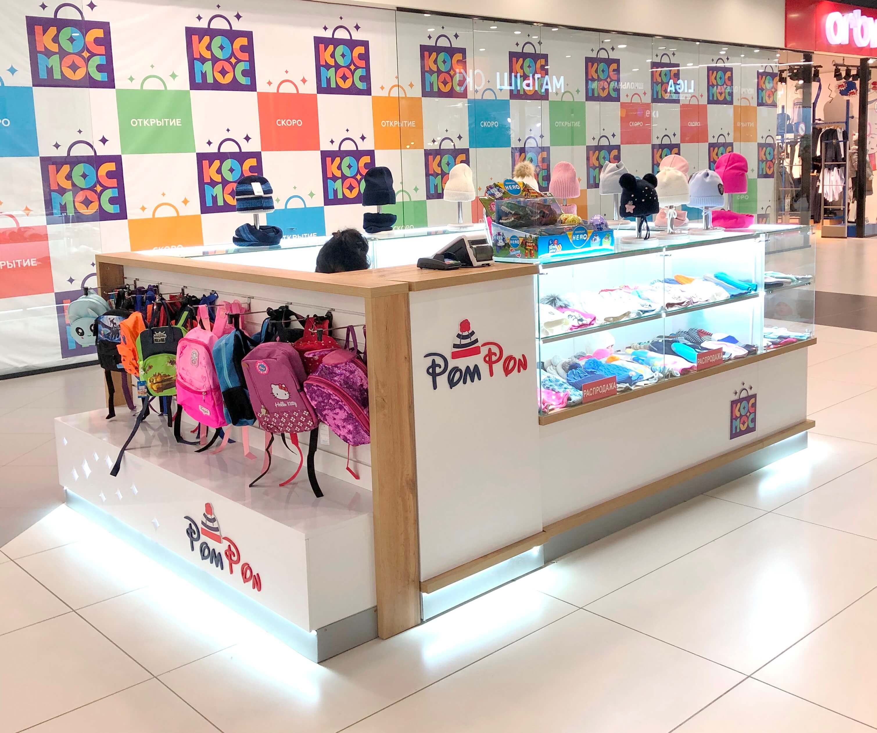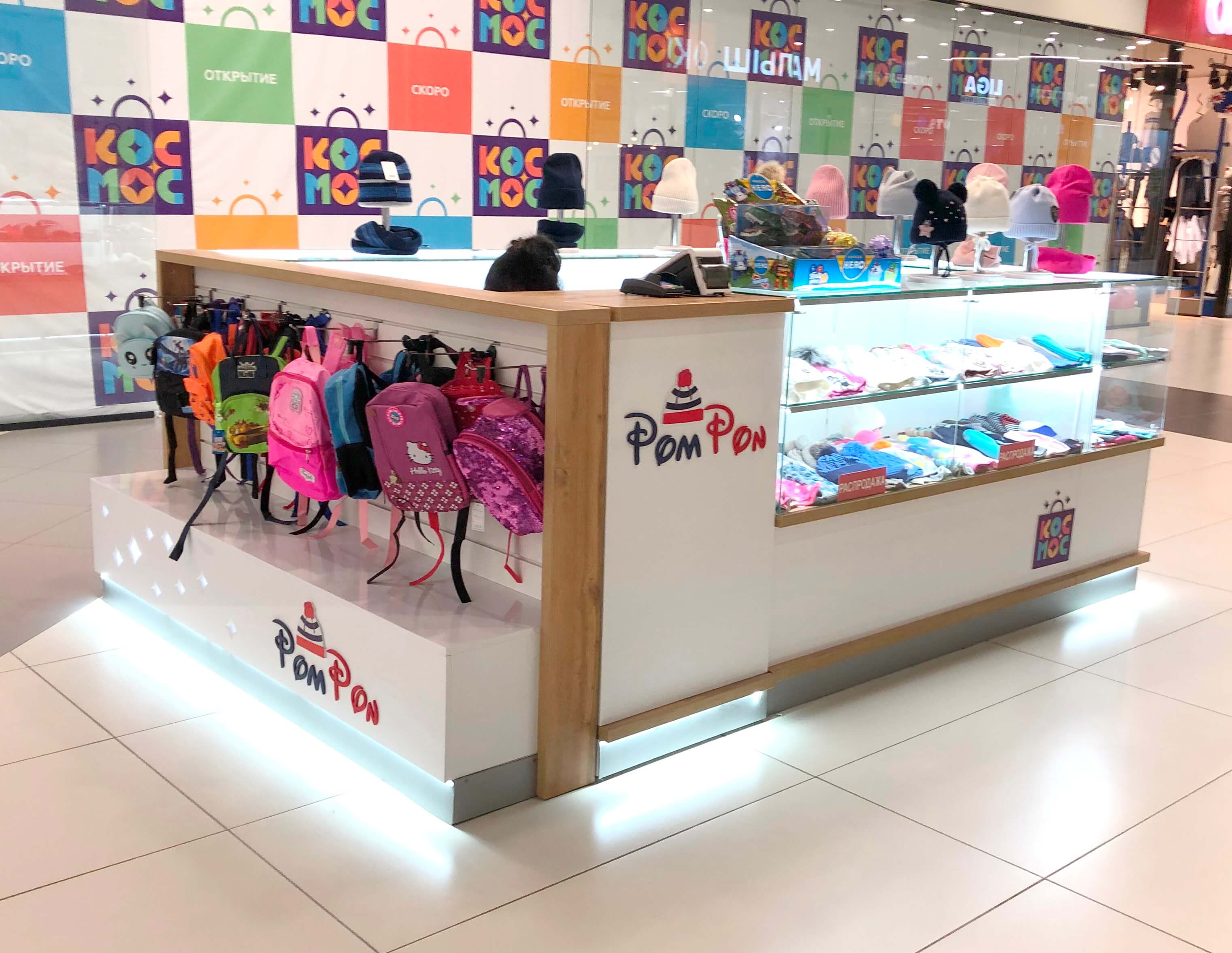 Маленький, яркий, и невероятно притягательный островной отдел реализовали наши специалисты в ТРК "Космос". Для этого мы учли: кронштейны для детских рюкзаков, выставочные платформы для шапок, открытые полки для одежды с непосредственным освещением и приятные глазу и на ощупь материалы, которые облагородят общий вид магазина детских вещей.