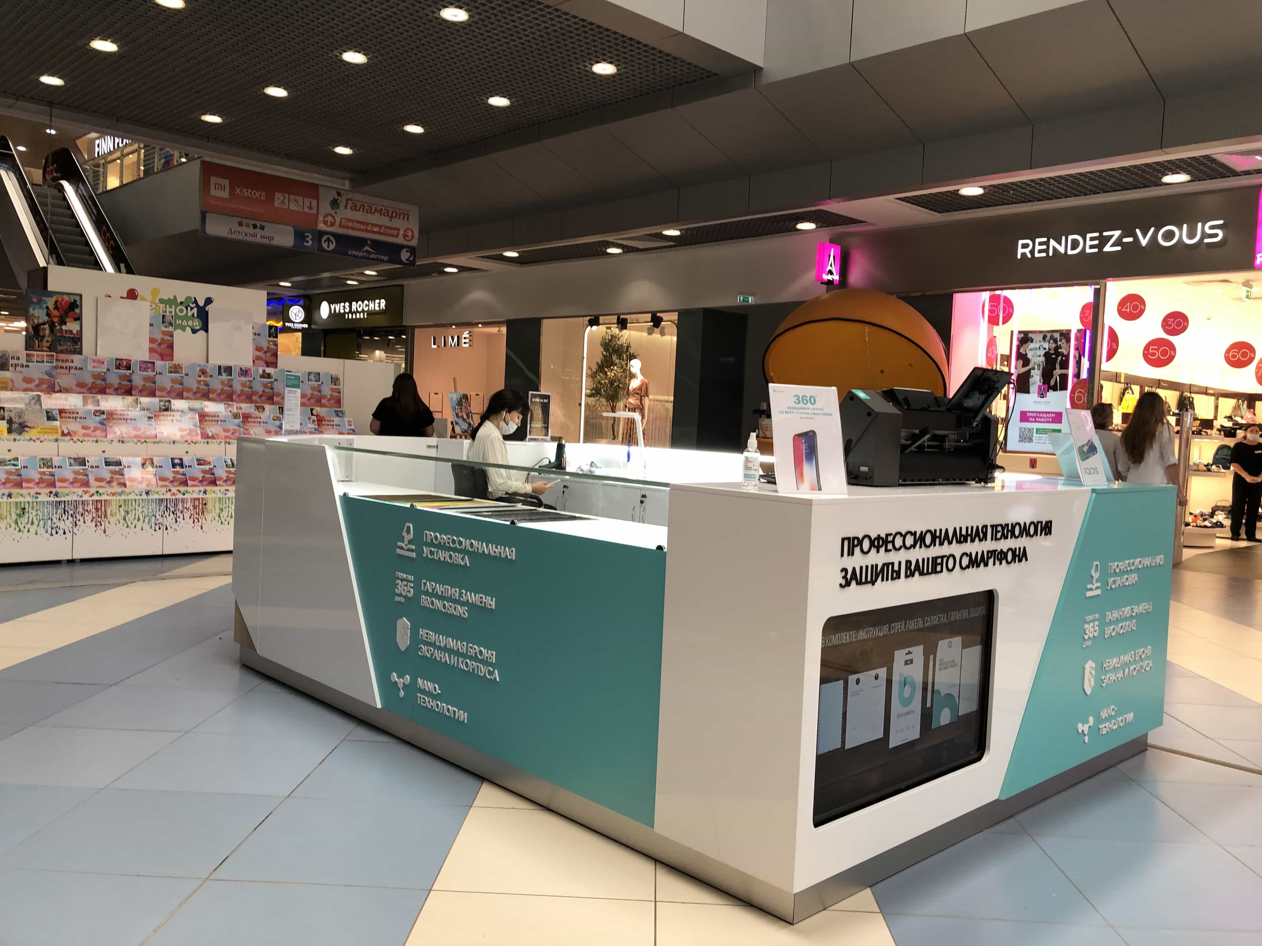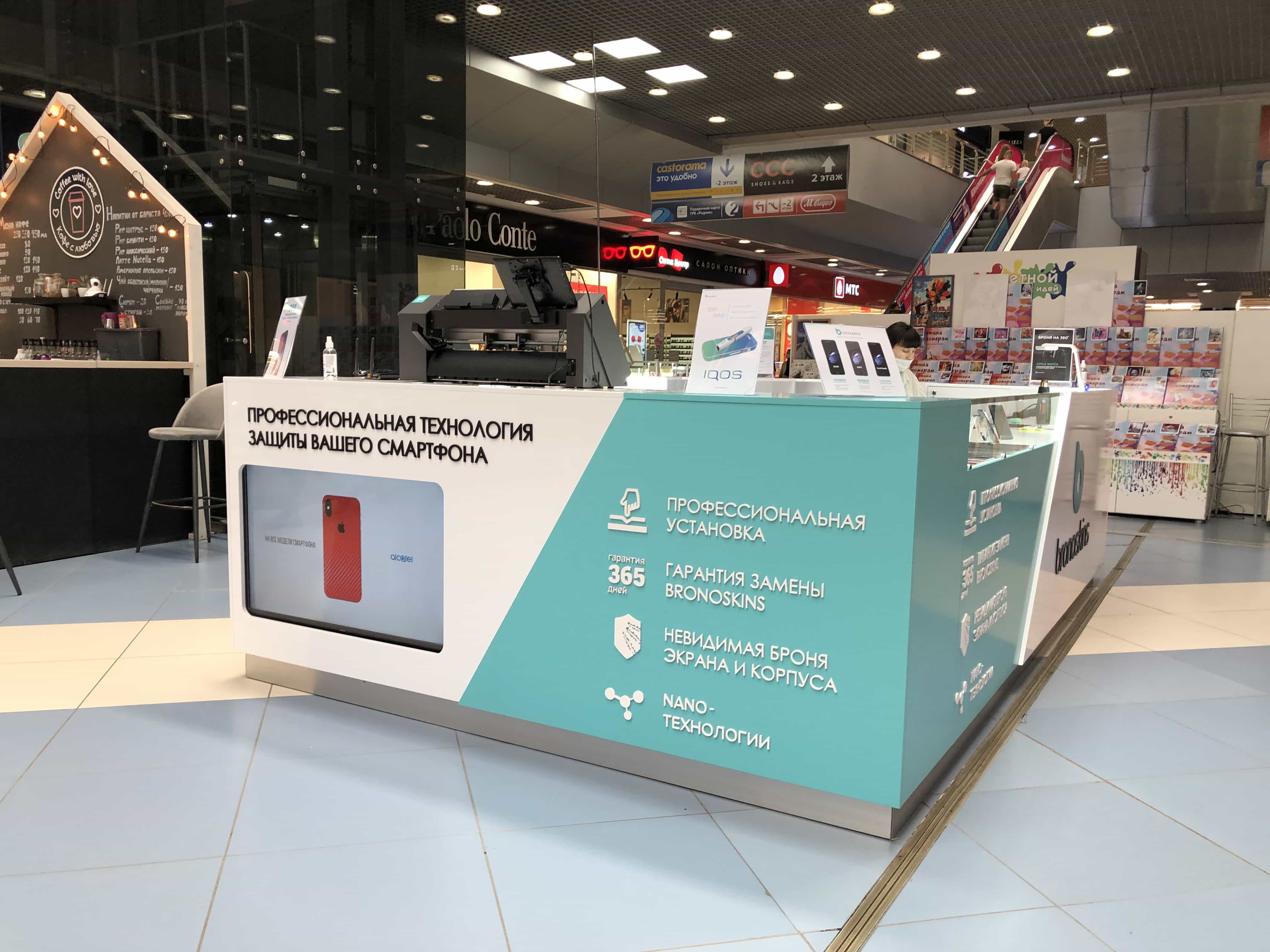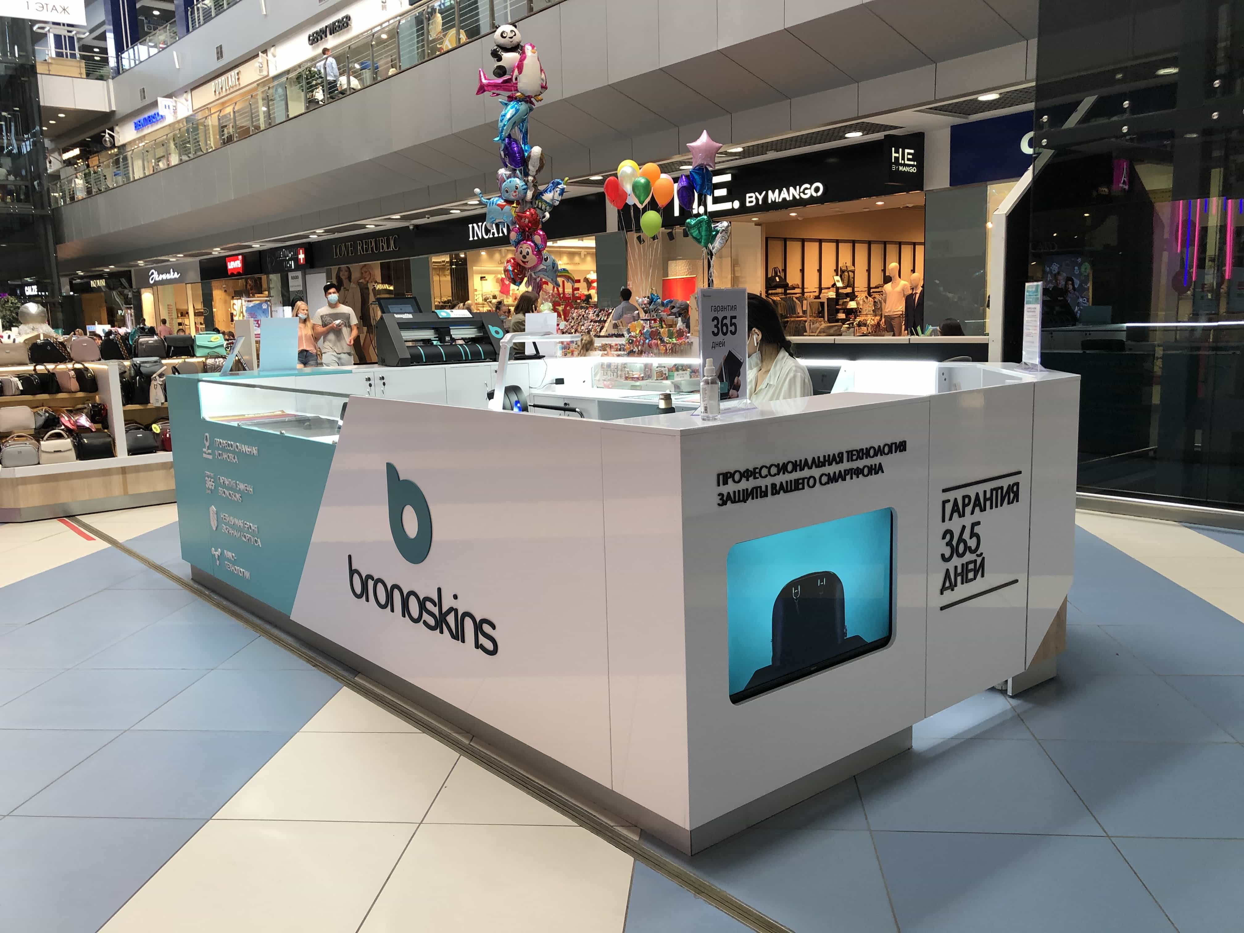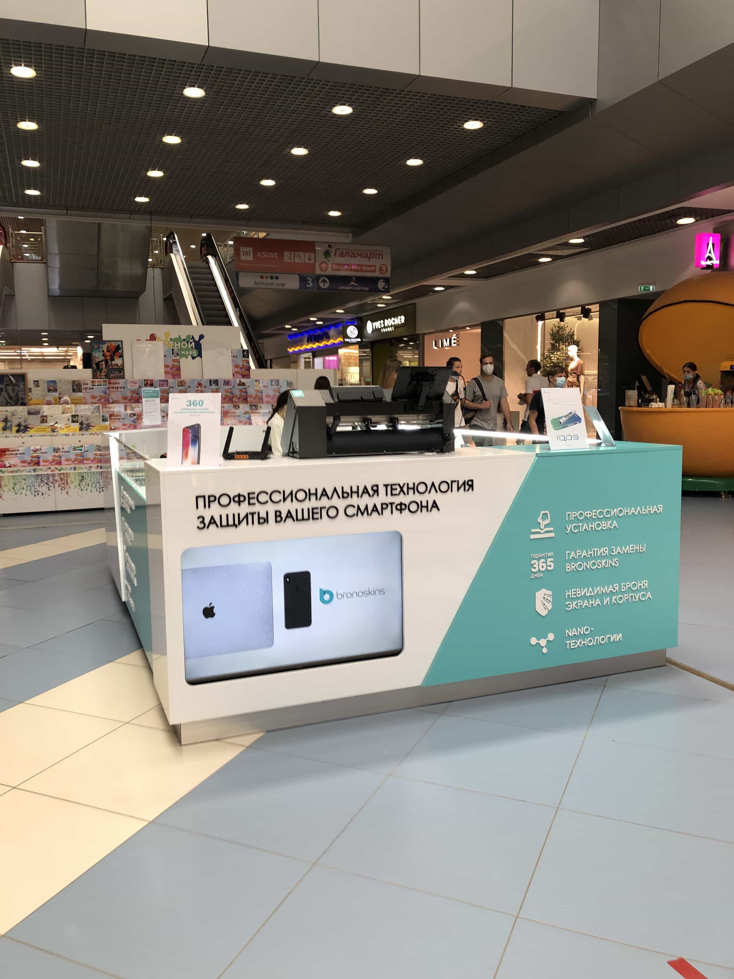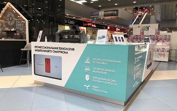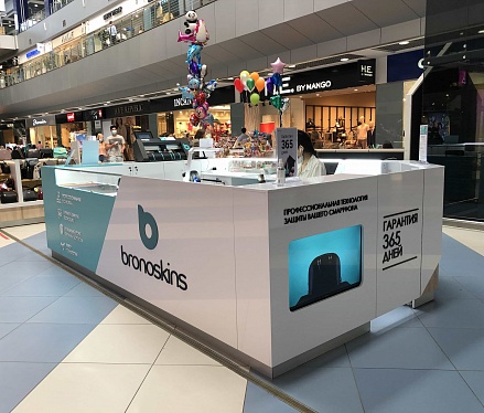 Для компании "Bronoskins" нашими специалистами был разработан и реализован дизайн-проект островного магазина, позволяющего одновременно как производить торговлю аксессуарами для смарт техники, так и осуществлять качественное обслуживание носимых устройств.
